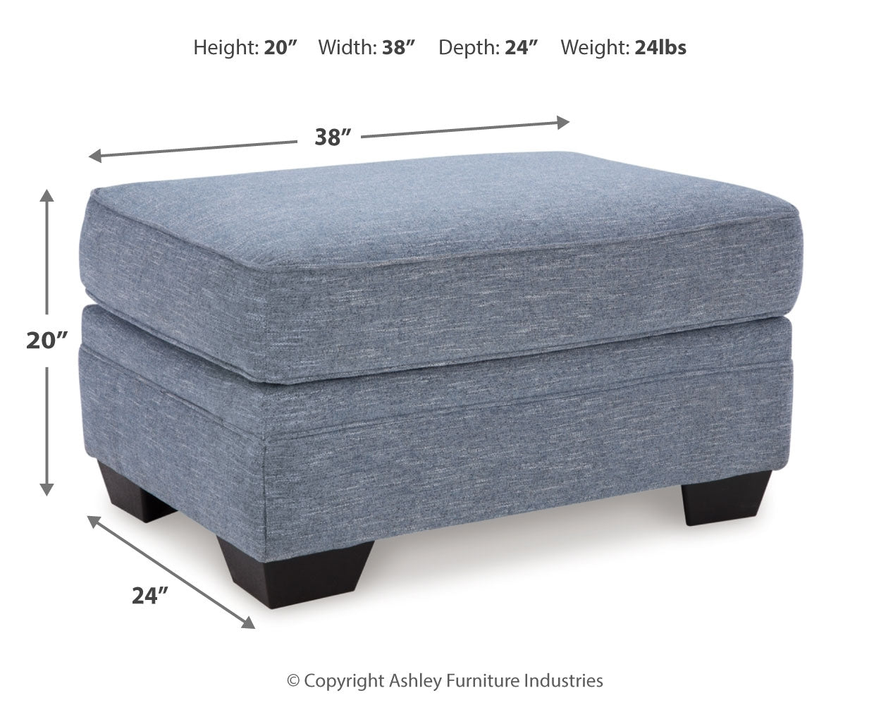 This ottoman is defined by comfort, convenience and classic style. Soft to the touch and stain-resistant, its Next-Gen Nuvella™ fabric is easy to maintain. And you'll love the universal appeal of its denim-inspired hue. The perfect companion to your chair or sofa, the ottoman is a simply chic approach to everyday relaxation.