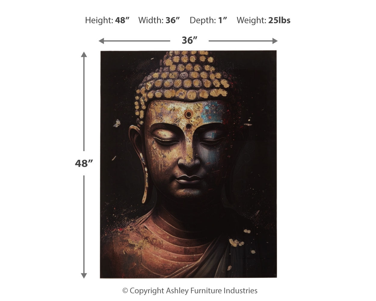 This glass wall art is the perfect addition to a tranquil space. With muted, calming shades of black, teal, rust and gold, this contemporary take on the meditating Buddha instills instant serenity in your home.