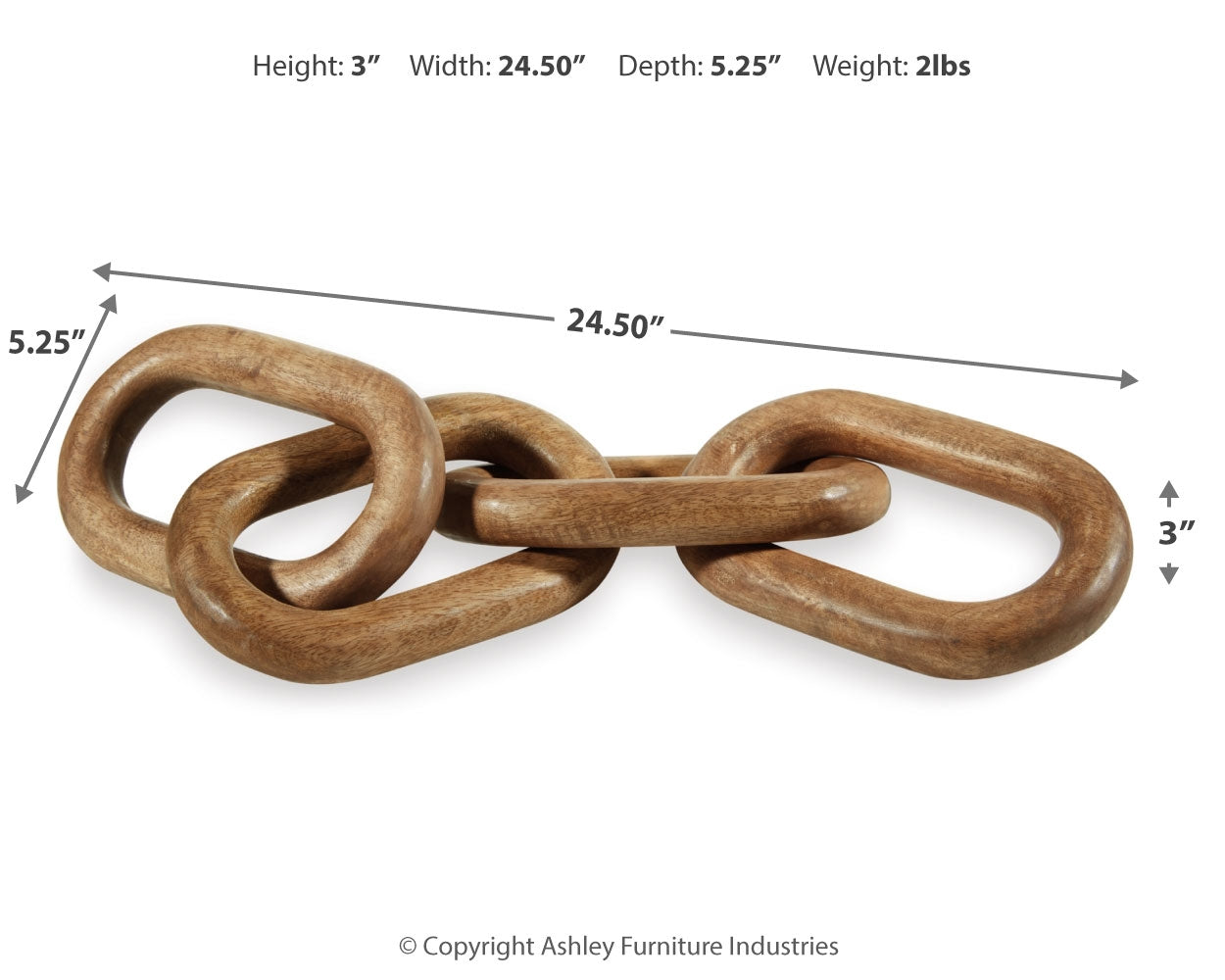 This sculpture sets the standard for casually cool art. Interlocking wood rings in a natural brown finish add an organic element to your decor. When displayed on a TV stand or fireplace mantel, or draped across a stack of books, it's such an impressive focal point.