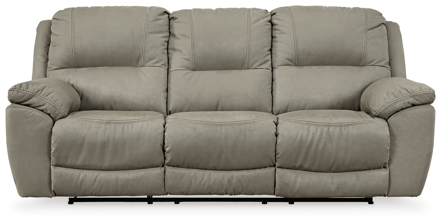 Kick back, relax, and enjoy some sports on TV with this reclining sofa. You will love its double stuffed pillow top arms and soft-as-suede faux leather upholstery. The family-friendly espresso color and creative stitching add panache. Recline in comfort even if floor space is limited, thanks to the space-efficient zero wall design. This bustle back sofa will always be a win.