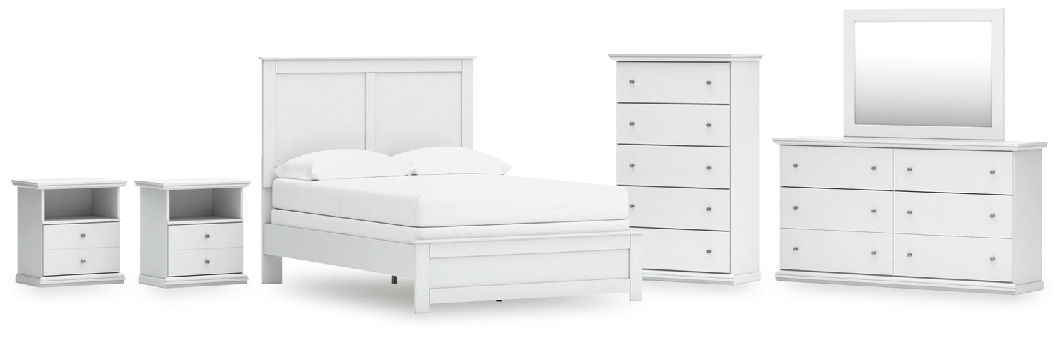 Bostwick Shoals Full Panel Bed, Dresser, Mirror, Chest, and 2 Nightstands - Full Panel Bed, Dresser, Mirror, Chest, and 2 Nightstands / White is backordered and will ship as soon as it is back in stock.
