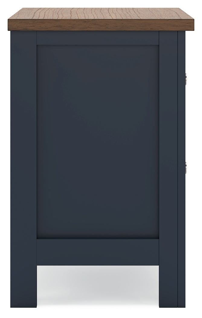 Add homespun charm to your restful retreat with this bedroom package. A modern take on timeless silhouettes, it pairs a dark slate blue finish with light brown tops. Drawer fronts and legs in a classic Shaker style bring an air of beautiful simplicity to the bedroom. Whether it's part of a charmingly curated guest suite or a casually carefree kids room, this set is a welcome addition.