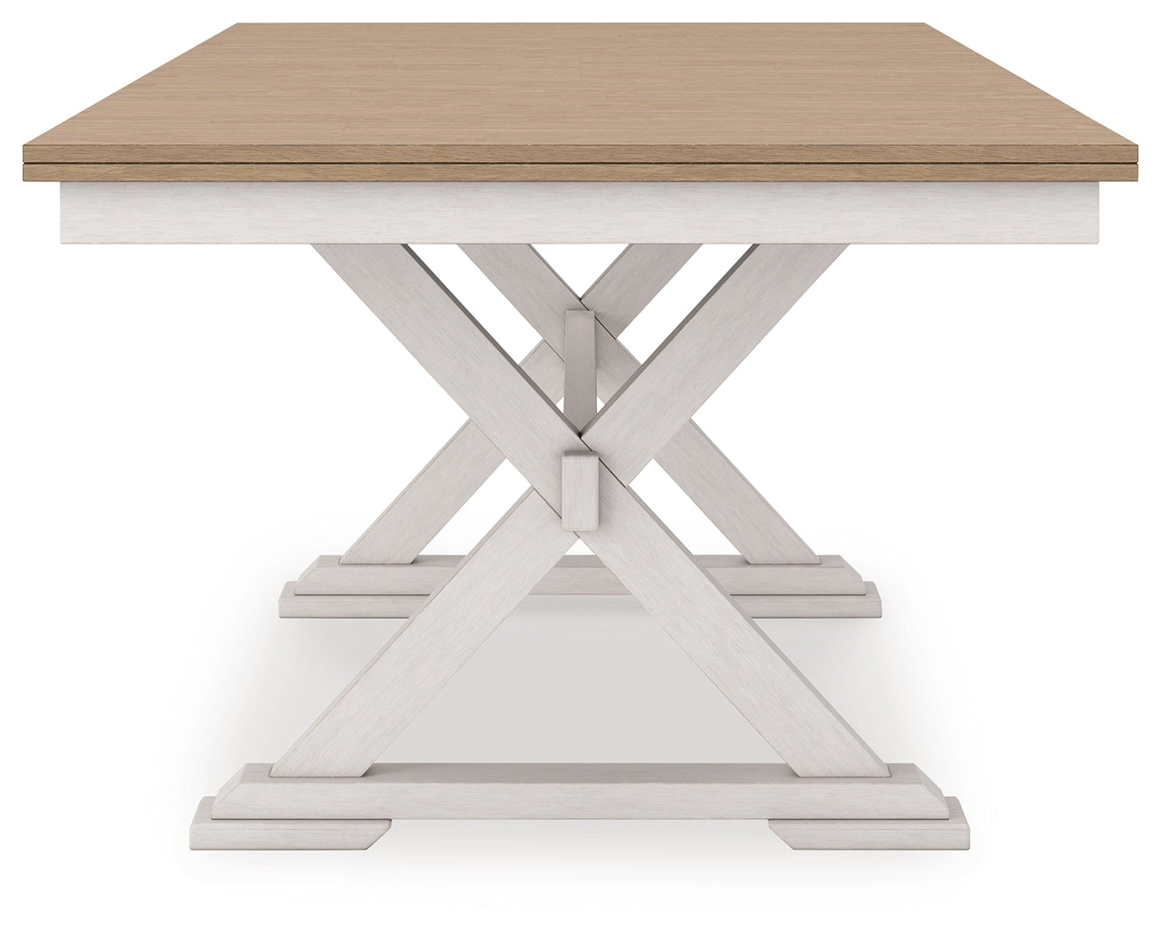Busy breakfasts and family dinners get a dose of modern farmhouse flair with this dining package. Its two-tone finish contrasts a light butcher block hue with antiqued white for an utterly charming effect. An effortless dining solution, this set adds a touch of chic character to your space.