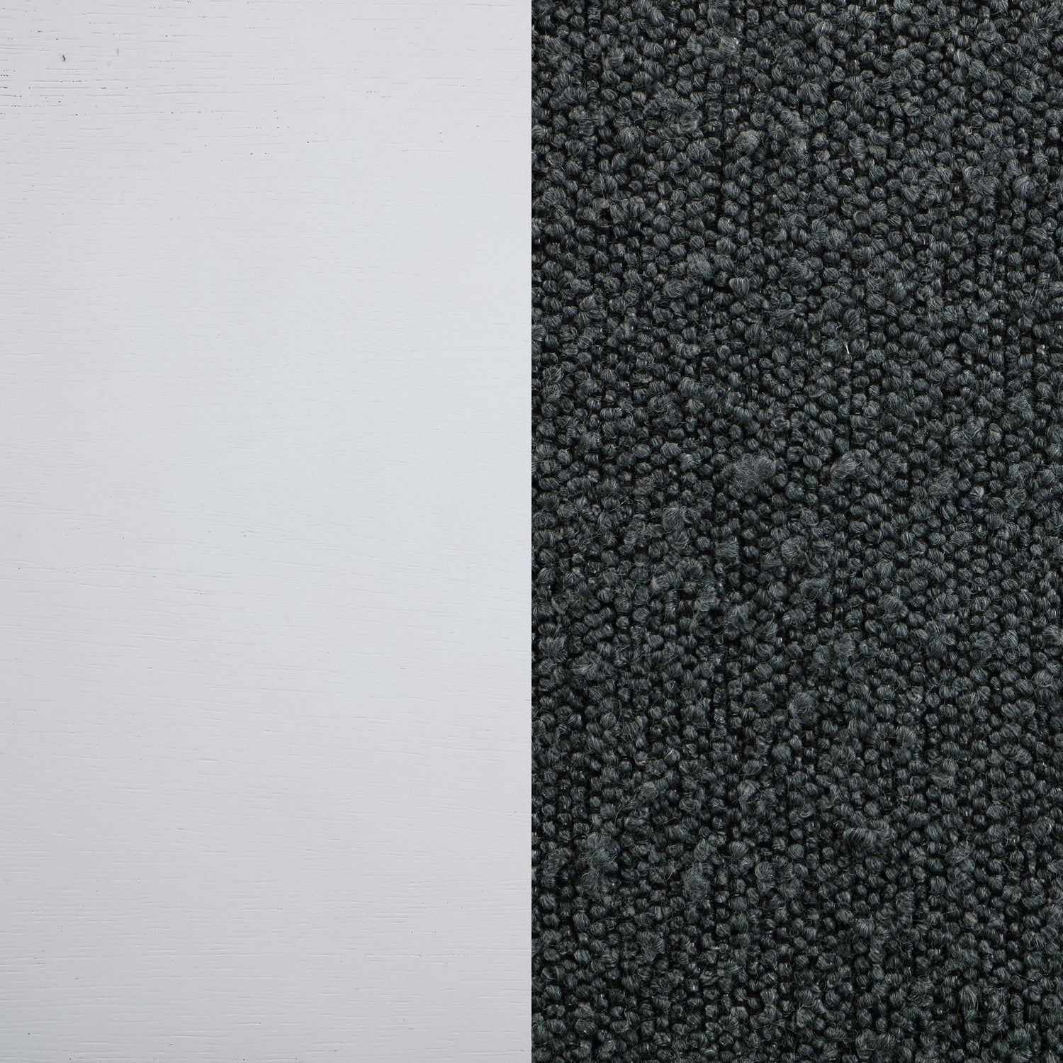 Embrace a modern minimalist presentation with this contemporary dining set. It centers on a roomy round dining table that seats four to six, with flared legs and a round shelf that adds stability and decorative potential. The set adds side chairs, each with a tall, structured silhouette and dark gray upholstery over plush foam cushions. A pearl white finish is clean and fresh, offering plenty of contrast against the gray. The set instills a clean, precise aesthetic, perfect for minimalist or maximalist decor themes.