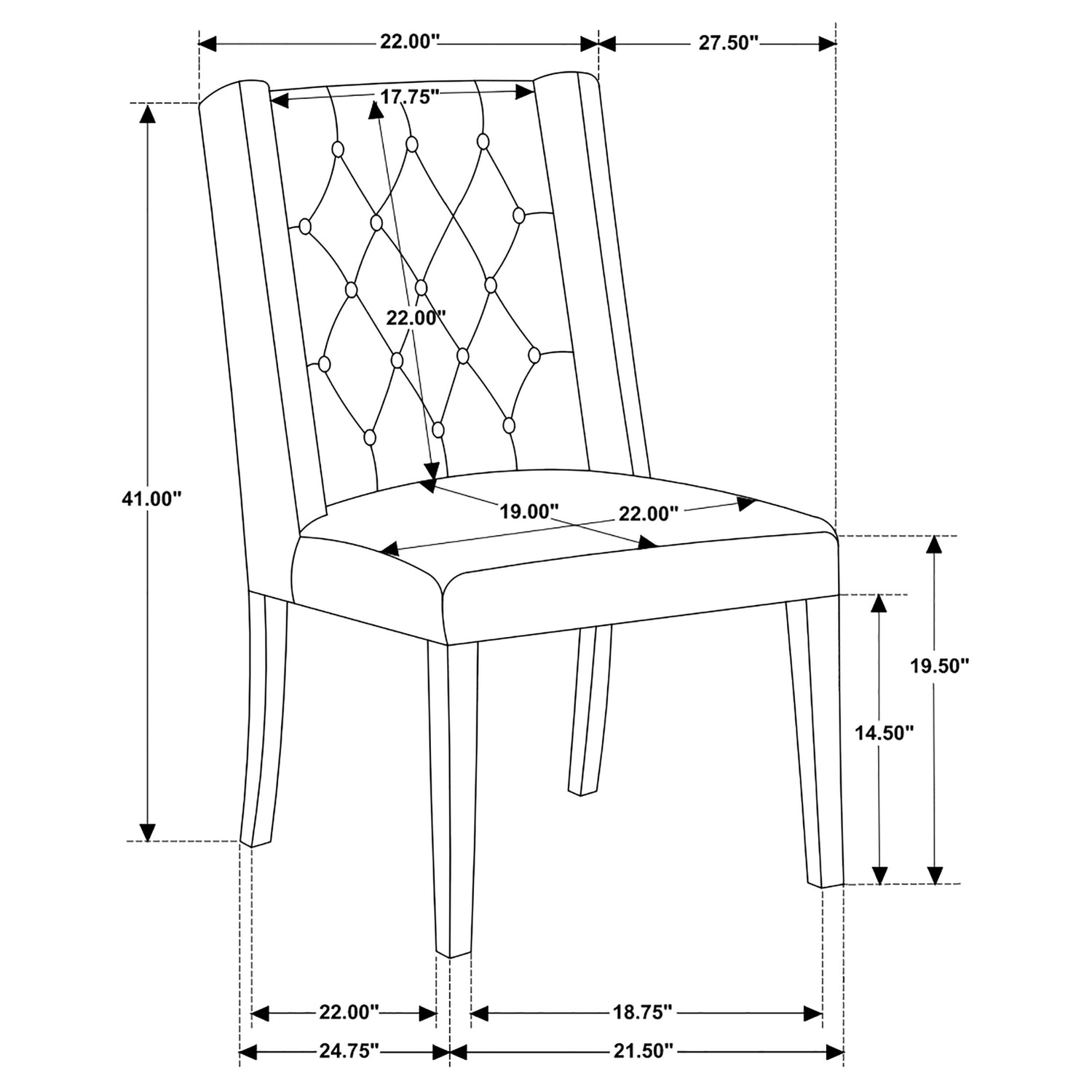 Complement your farmhouse style dining area with this rustic and traditional style dining room set. This dining set comes with a rectangular table with a trestle style base, while live edge detailing delivers rustic, purposely unfinished appeal and an optional bench. The set includes armless wingback style dining chairs. Each chair is upholstered in a beige linen-like fabric with button tufting. With beautiful attention to detail, this dining set is crafted from US hickory veneer in a gorgeous natural honey and espresso finish.