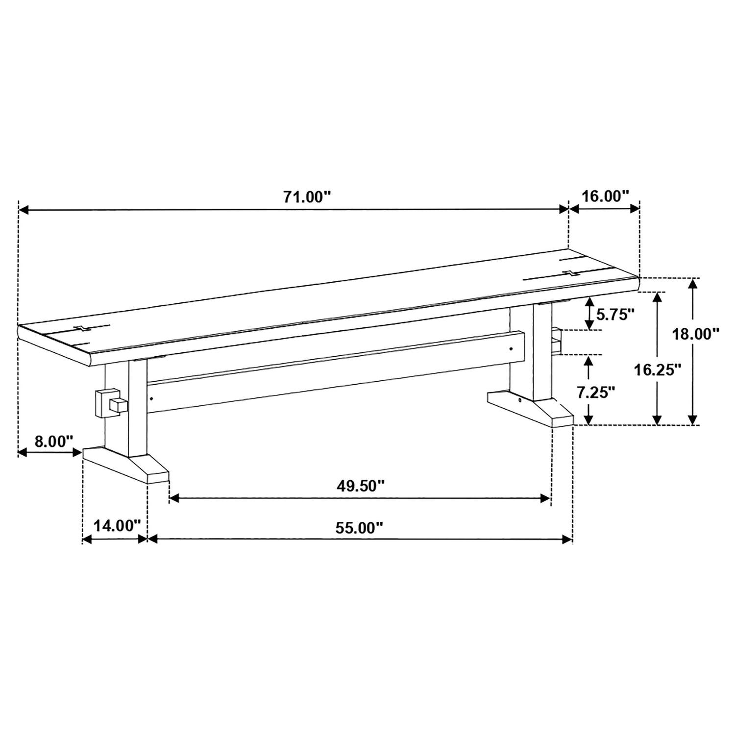 Bench | 70.75" | 16" | 18" |