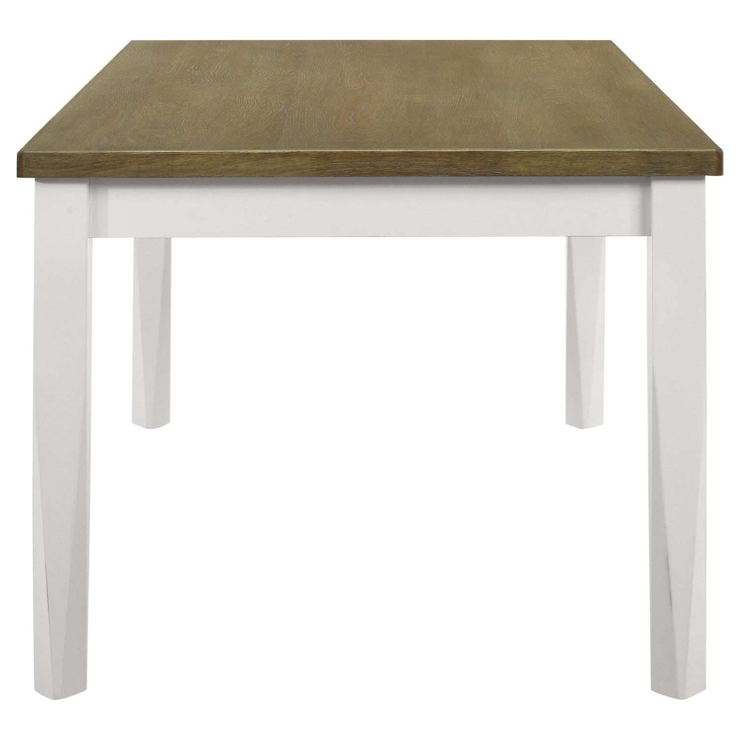 You'll love the casual, comfortable character of a modern farmhouse dining table. Perfect for an eat-in kitchen or breakfast nook, it delivers a classic rectangular profile with an eye-catching two-tone finish. The brushed brown tabletop showcases wood grain details for a fresh, organic look and feel. The base of the table receives a white finish that's crisp and clean, adding airy flair, especially in a compact space. Tapering legs add a hint of artistry with their faceted look.