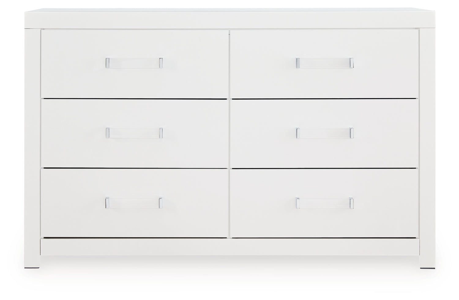 For those with a penchant for modern glamour, this dresser reflects your upscale taste. It’s dressed in a crisp matte white finish, with acrylic and chrome-tone hardware incorporating a subtle shine. Smooth-gliding drawers tuck away clothes and other essentials in style.