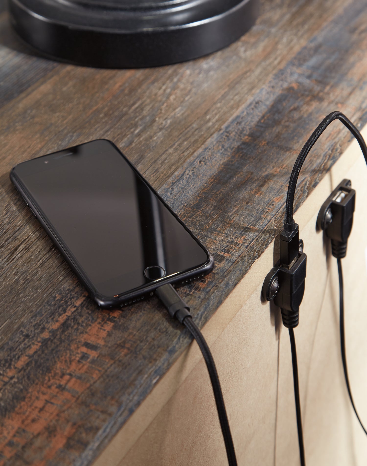 When merged in just the right way, rustic and industrial styles can make one happy marriage. Case in point: this queen bookcase bed. A refined take on barn board beauty, its complex, replicated wood grain showcases hints of burnt orange and teal tones for a sense of weatherworn authenticity. Three open cubbies lined with a dimming LED light strip keep bedtime reads top of mind. Set also includes a dresser and 2 nightstands.