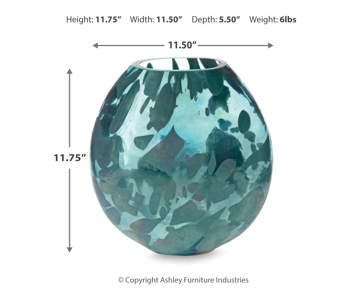 Display florals in captivating contemporary style with this vase. Iridescent details and shades of teal marry to make an artful interpretation of color. Whether it's showing off seasonal blooms or standing alone, this piece is a graceful addition to your decor.