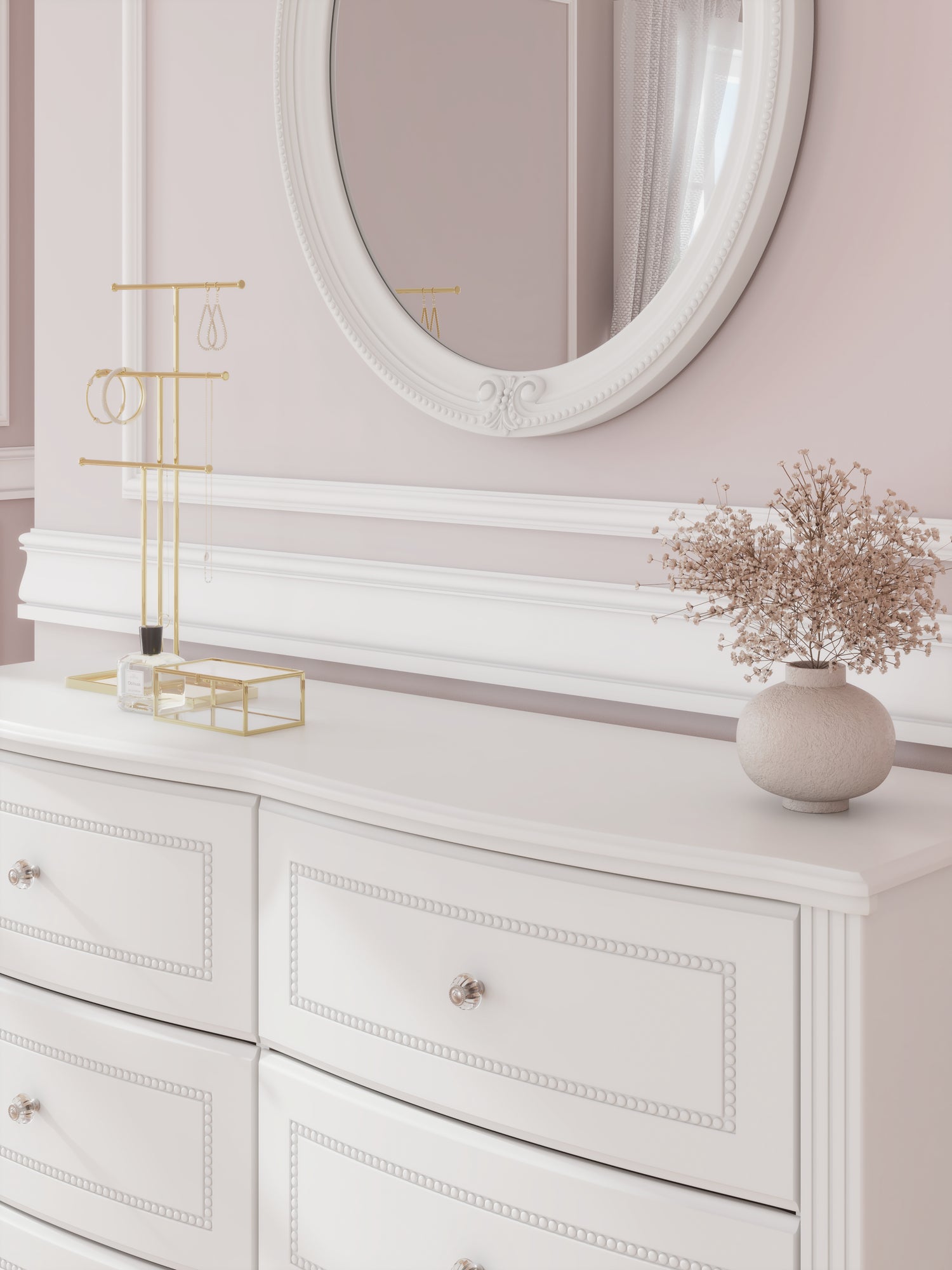 Fit for a princess. This bedroom package’s crisp matte white finish pairs with charming elements like bun feet, crystal knobs and ornate beading—perfect for your girly girl. This set's crowning touches are sure to make your little one feel like royalty.