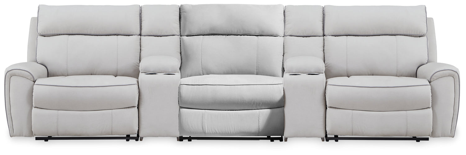 Social Pointe 5-Piece Reclining Sectional with Storage Consoles - 5-Piece Reclining Sectional with Storage Consoles / Pearl/Ash is backordered and will ship as soon as it is back in stock.