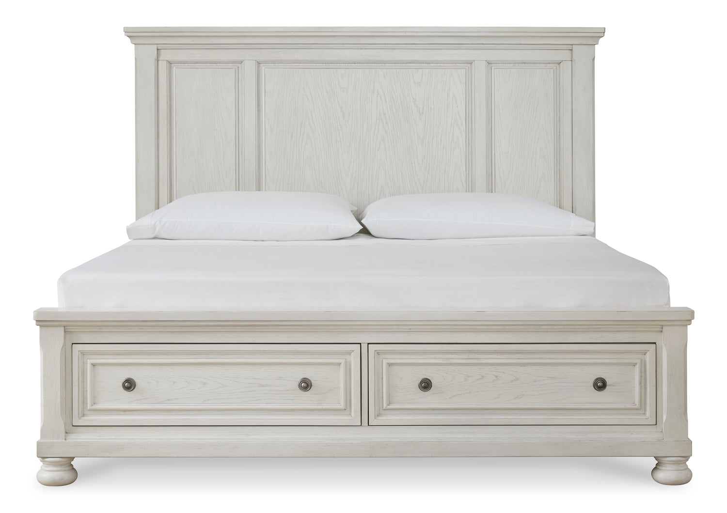 Robbinsdale Queen Storage Bed, Dresser, Mirror and Nightstand - Queen Storage Bed, Dresser, Mirror and Nightstand / Antique White is backordered and will ship as soon as it is back in stock.