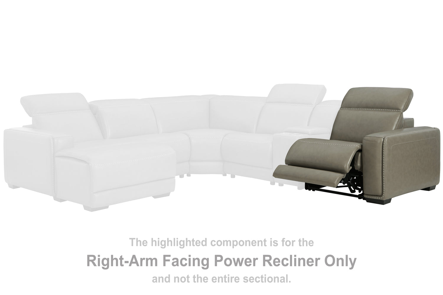 This right-arm facing power recliner is made with a combination of 100% top grain leather and faux leather upholstery. Pairs with other items in the series to make a sectional.
