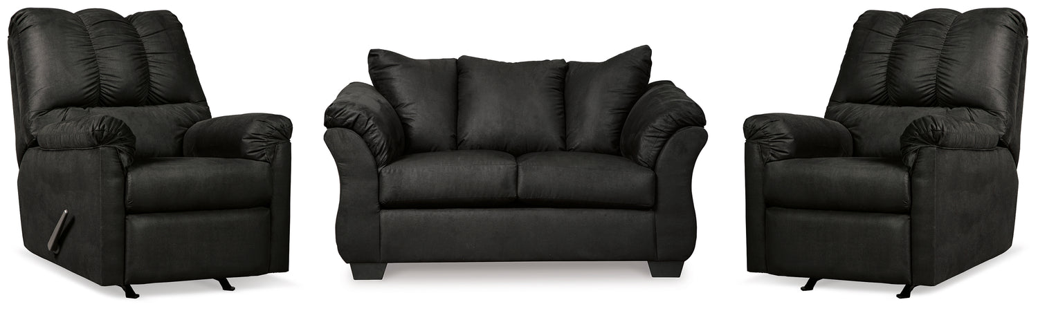 Darcy Loveseat and 2 Recliners - Loveseat and 2 Recliners / Black is backordered and will ship as soon as it is back in stock.