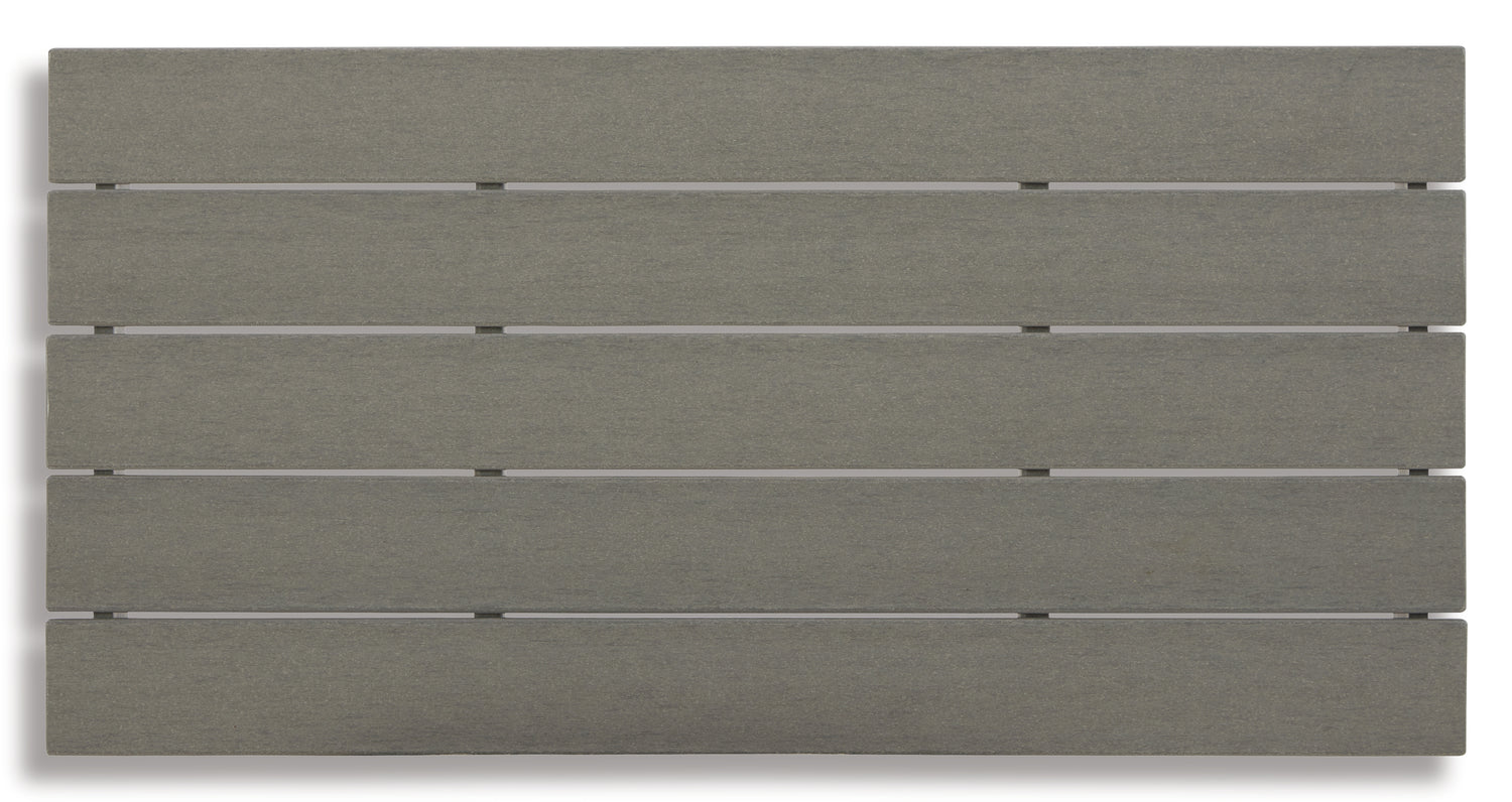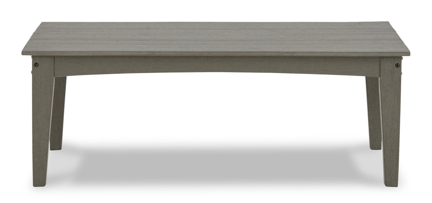 It’s the dawn of a new day for gray. Embrace the style trend with this loveseat, set of 2 chairs and coffee table set. Crafted of HDPE material that combines the exceptional durability and weather resistance you need with the "wood look" you love, this timeless set takes al fresco living to a whole new level. Slatted styling on the table naturally sheds rainwater. The thick seat and back cushions on the chairs and loveseat are wrapped in our exclusive Nuvella® high-performance fabric that’s fade resistant, stain resistant and a breeze to clean.