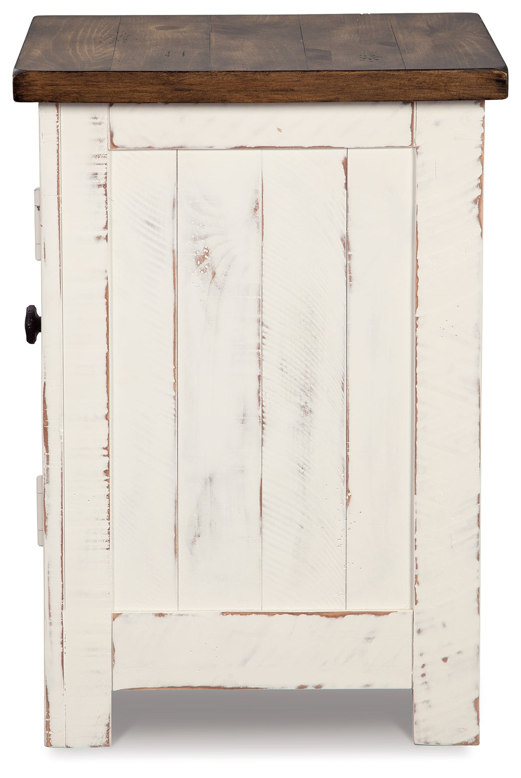 Double take. Sporting a two-tone finish, dual-sided lid design and expansive storage space, this square coffee table and 2 end tables takes the art of rustic farmhouse living to a new level. Designer touches include plank-effect styling, heavy distressing and industrial bracket hardware.
