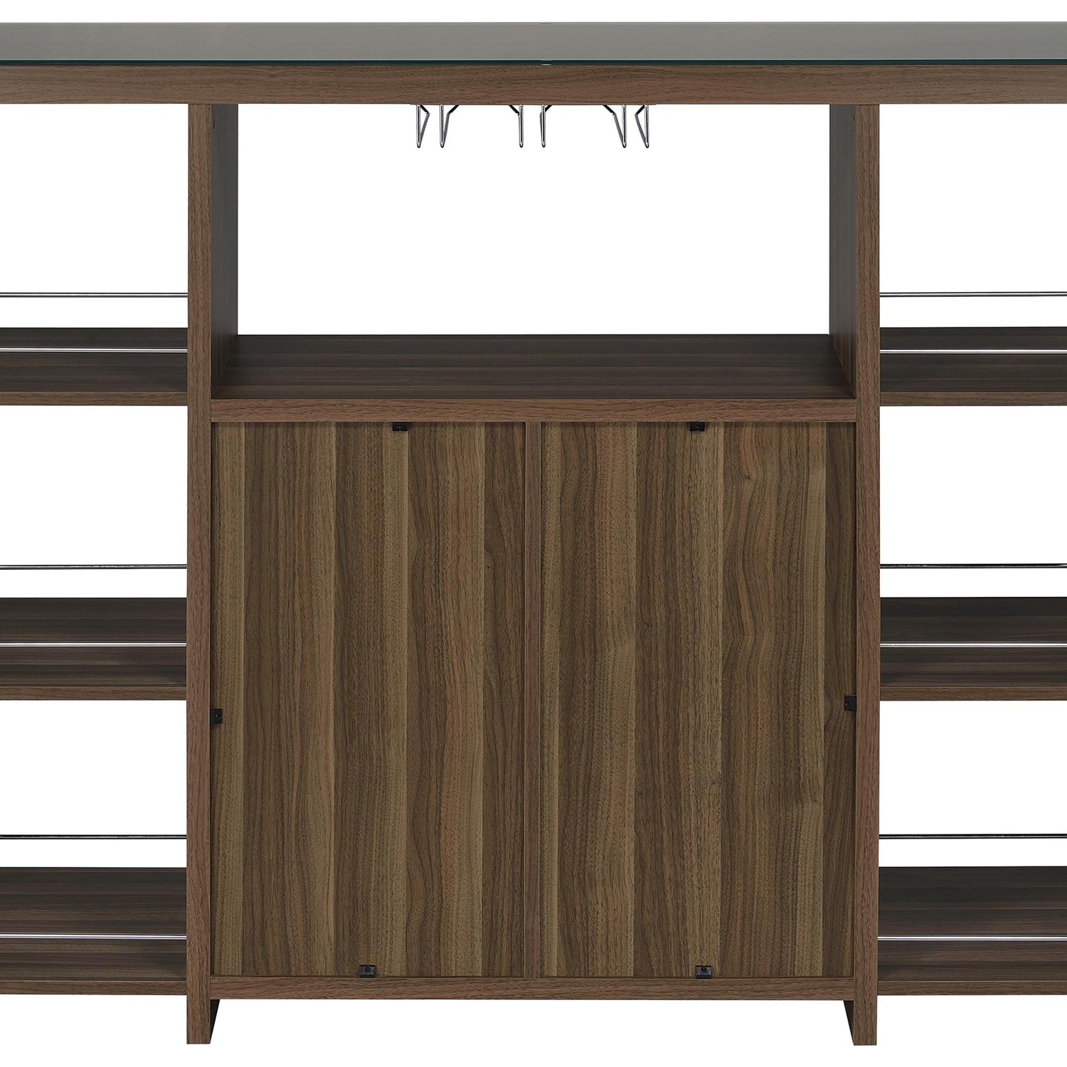 Evelio 6-shelf Glass Top Home Bar Wine Cabinet Walnut