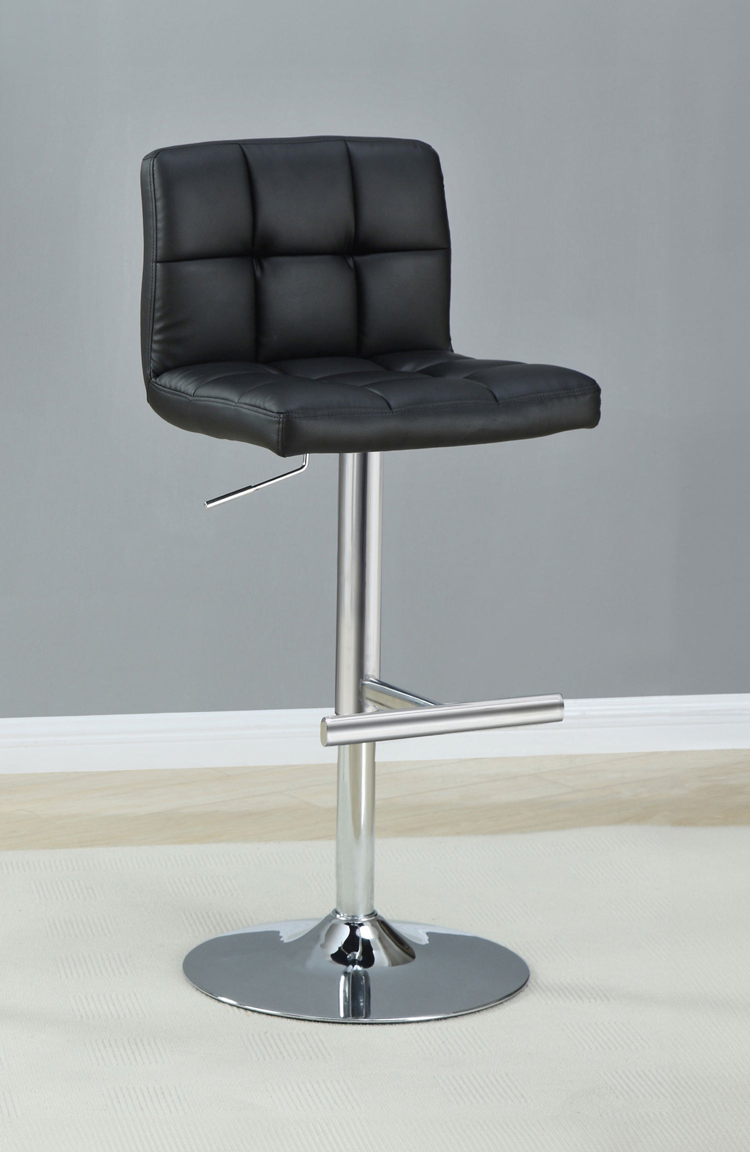 Elevate your home bar or kitchen with this sleek adjustable bar stool, designed to combine comfort and style effortlessly. Upholstered in durable faux leather with tufted detailing, this stool offers a chic, modern look that’s easy to maintain. The hydraulic gas lift allows for easy height adjustment, ensuring a perfect fit for any counter or bar. A sturdy chrome base and footrest provide stability and support, enhancing the stool’s contemporary appeal. Enjoy a sophisticated seating option that brings both function and flair to your space.