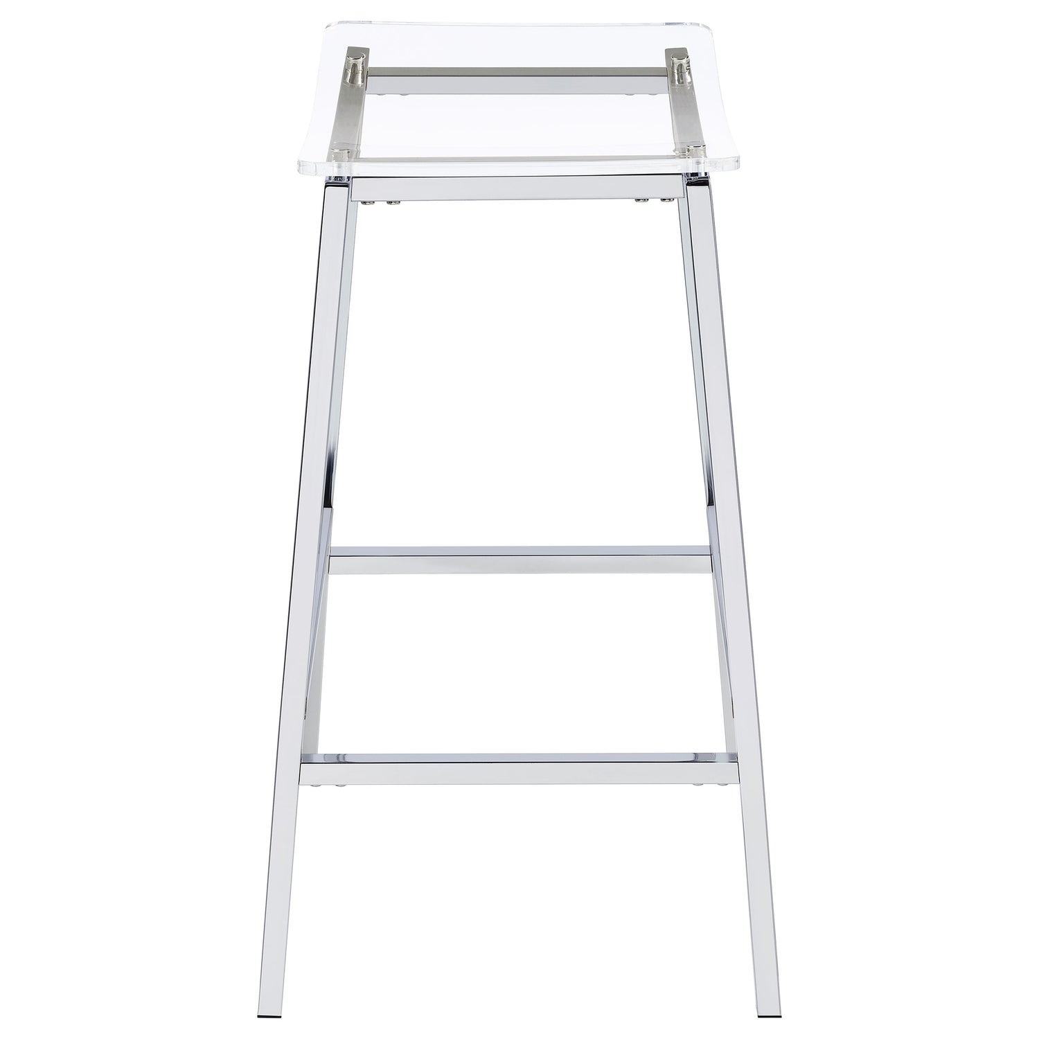 Updated to reflect the carefree contemporary style you crave, this set of two bar stools uses modern materials and finishes to bring a crisp look. Perfect for casual seating at a bar table or counter, these stools are lightweight yet sturdy. Gleaming chrome finish metal framing includes a two-bar seat support and built-in footrests. A gently curved seat made of acrylic reveals the nuts and bolts of metal framing. Add this bar stool set to your easy-living space for entertaining and family meals.