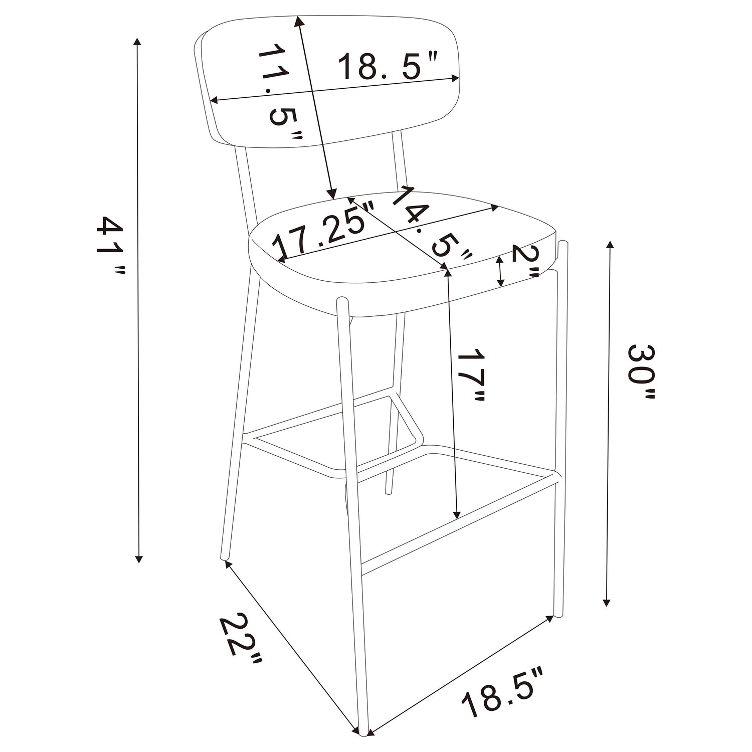 Create a relaxed and inviting ambiance at a kitchen bar or in your home lounge with a set of two modern barstools. Each boasts a durable and strong metal frame with a sandy black finish. Dark oak finish backrests complement neutral upholstery, offering foam cushioning that offers welcome comfort for family and friends. Slim structure ensures a crisp, modern silhouette for each barstool. Geometric details create a built-in footrest, perfect for leisurely enjoyment.