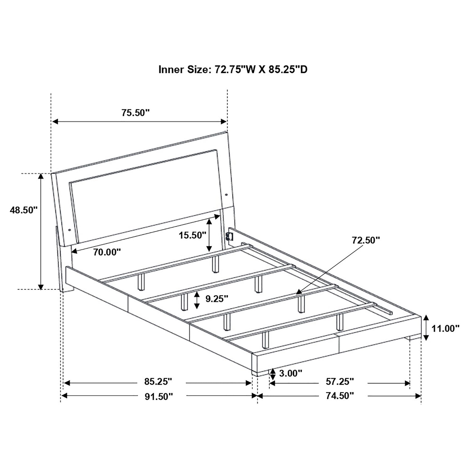 California King Bed | 75.5" | 91.5" | 48.5" |