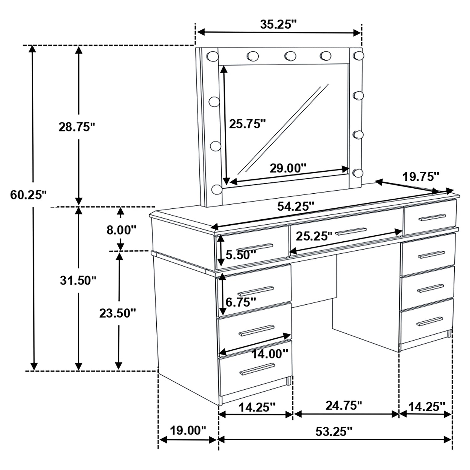 Vanity & Mirror | 54.25" | 19.75" | 60.25" |