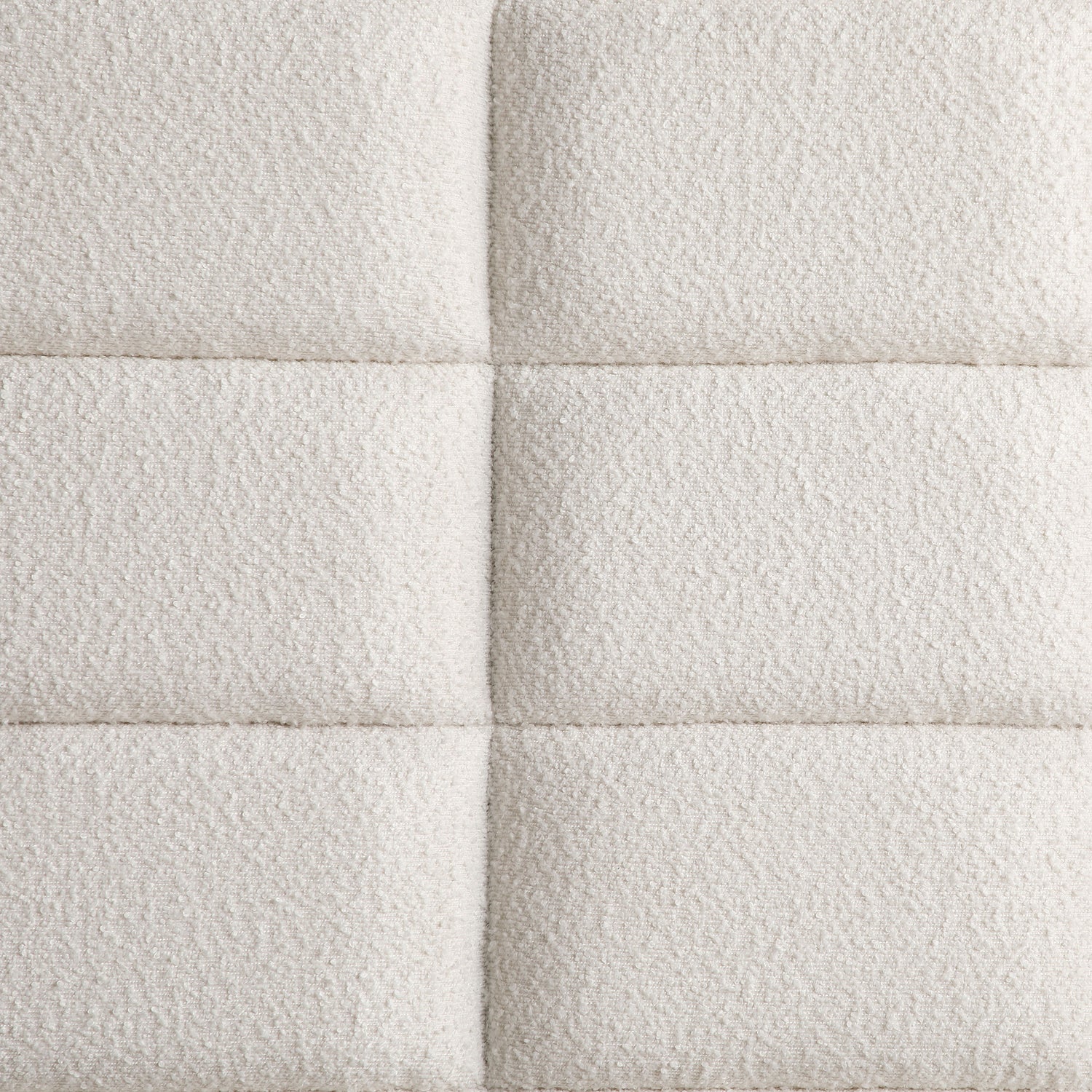 Approachable style infused a modern four-piece bedroom set that centers on a striking upholstered bed. In cream with grid style tufting, the bed presents with a tall headboard and low footboard, creating an open, airy look and feel. A eight-drawer dresser includes a framed mirror, creating a stylish and functional top perfect for everything from morning rituals to decor that adds personality. The set adds a two-drawer nightstand with a shelf, creating ample space for personal items, decor, and a reading lamp at your bedside. The set is complete with taupe oak wood finish that's soft and neutral to complement a wide variety of linen and decor choices.