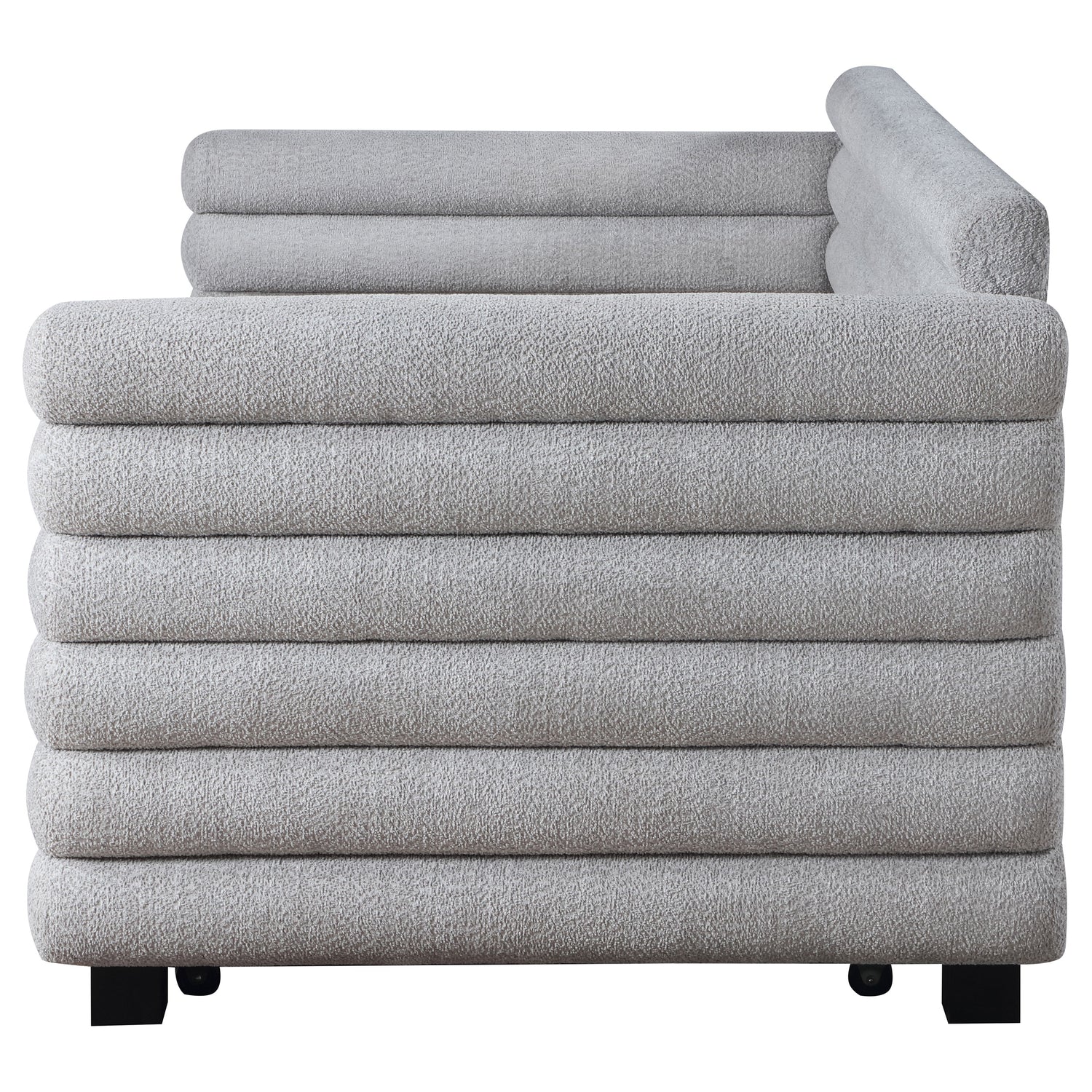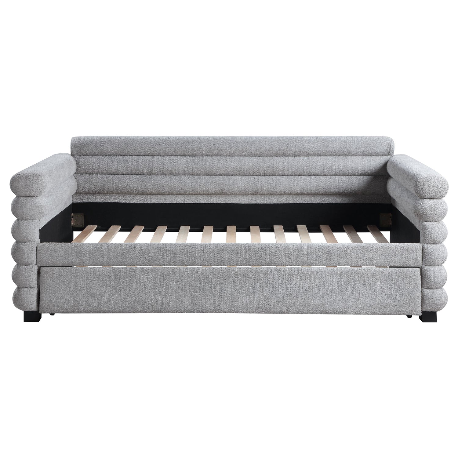 You're going to love the intriguing silhouette and boucle upholstery featured on this modern daybed and trundle. Offering contemporary flair, the daybed is designed with layered round bolsters, creating exceptional texture and dimensionality in your living room or den. Boucle upholstery is fresh and modern, creating inviting texture and character. The bed and trundle are twin-sized, offering easy lounging on a daily basis, or creating space for a pair of overnight guests. This stylish daybed offers the perfect combination of impressive style and wonderful versatility.