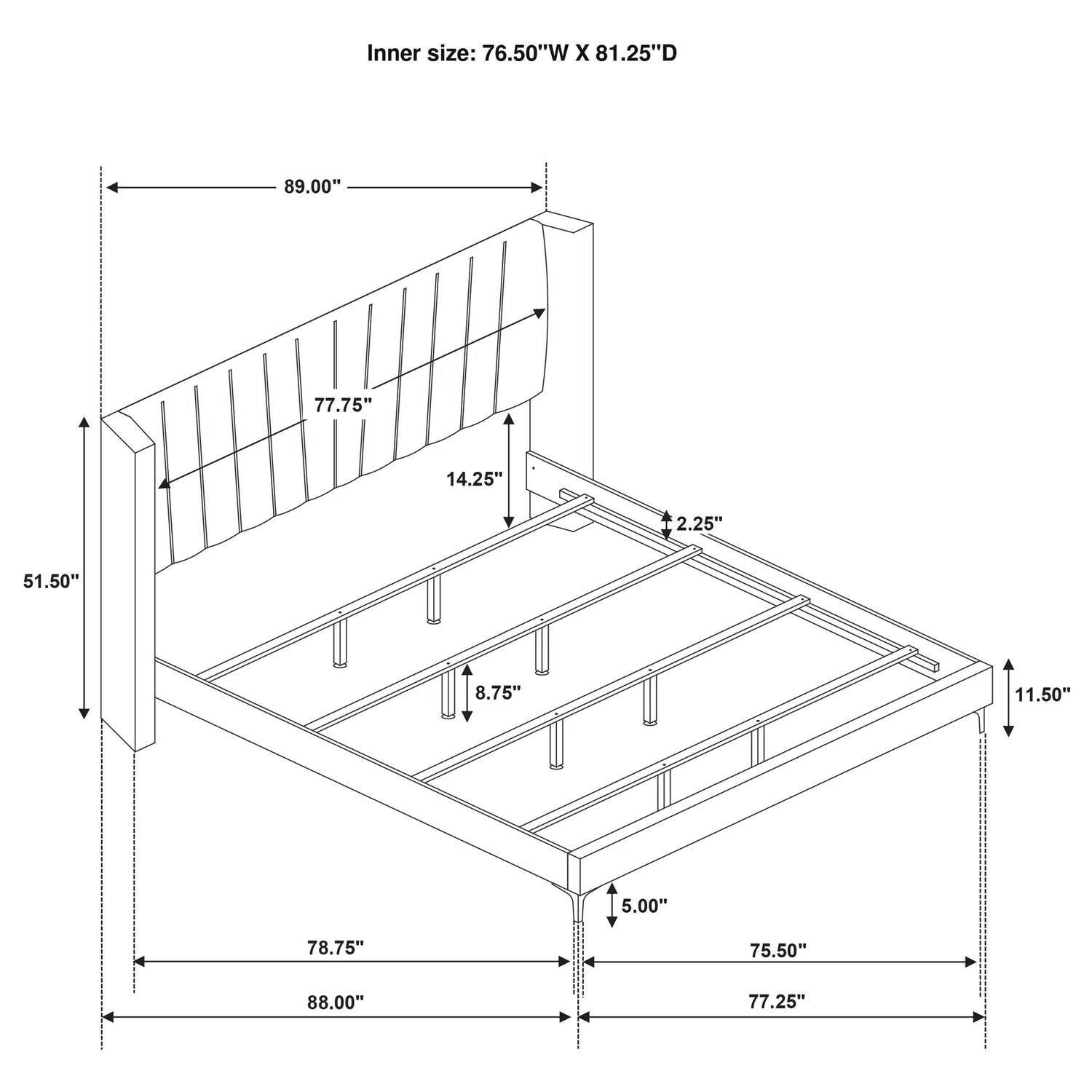 Eastern King Bed | 89" | 87.5" | 51.5" |