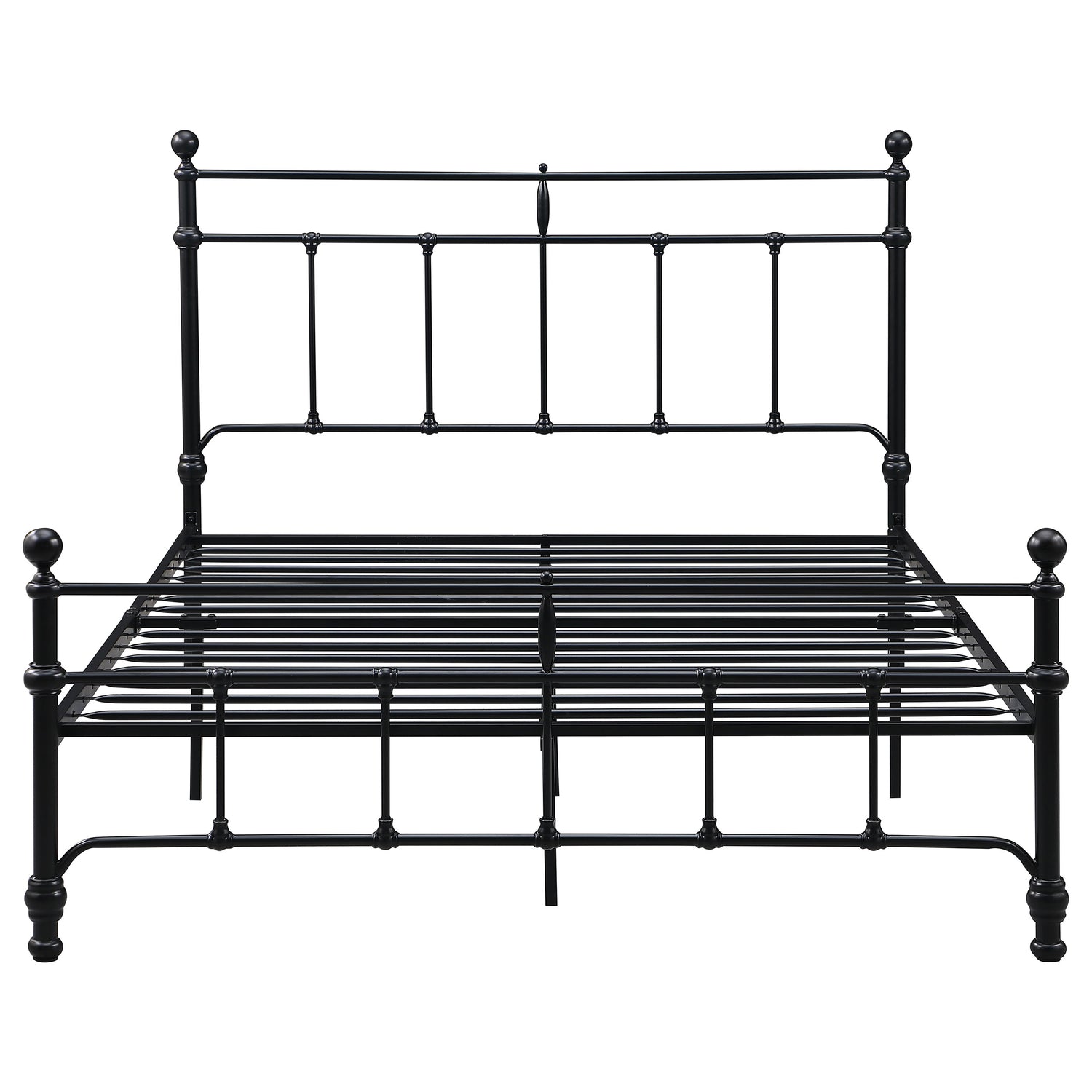 Bring timeless charm and elegance to your bedroom with this beautifully crafted metal bed. Its vintage-inspired design features a sturdy metal frame, complete with intricate detailing on the headboard and footboard, all finished in a sleek matte black powder coating. This finish not only enhances its classic silhouette but also provides a durable, long-lasting surface. Perfect for traditional, rustic, or industrial-themed interiors, this bed combines style with robust construction for lasting support and a comfortable night's sleep. Elevate your space with the subtle sophistication of this statement-making metal bed.