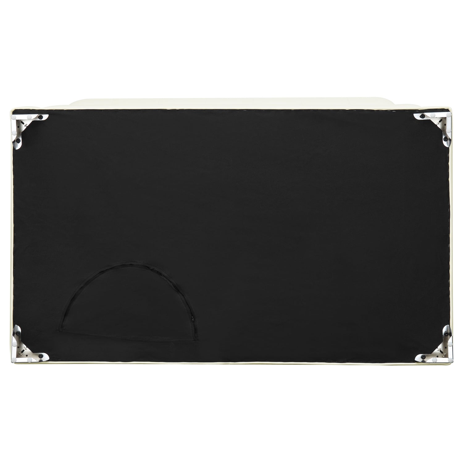 Add a dash of modern glamour to your living space. This sleek, stylish loveseat has a delightfully contemporary look. Heavy-duty chrome doorknocker handle accents give it an intriguing touch of artistry. Deep button tufting pulls its design together with fashionable flair. Upholstered in padded, breathable pearl white leatherette, this loveseat offers hours of cool, comfy relaxation.