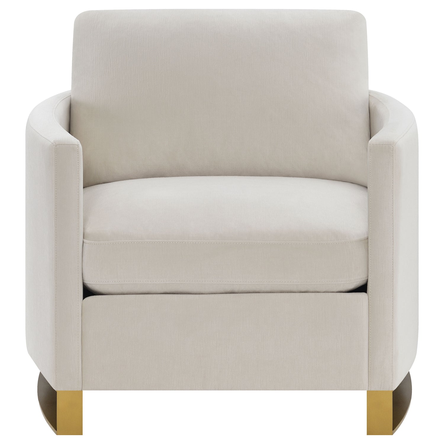 Fresh inspiration marks the start of a stylish, custom room design that begins with this living room set. Modern and contemporary with a softening effect that works in transitional spaces, this set delivers a versatile aesthetic with textured beige velvet upholstery and a surprising twist creating elegance in metal leg units crafted from gorgeous gold stainless steel. Arched sides add character to this set that offers supreme lounging comfort on reversible feather blend cushion seats and sinuous spring deck and webbed backing. Make this set a focal point in a casual, sophisticated space reserved for family and guest entertainment. Includes two accent pillows for each piece.