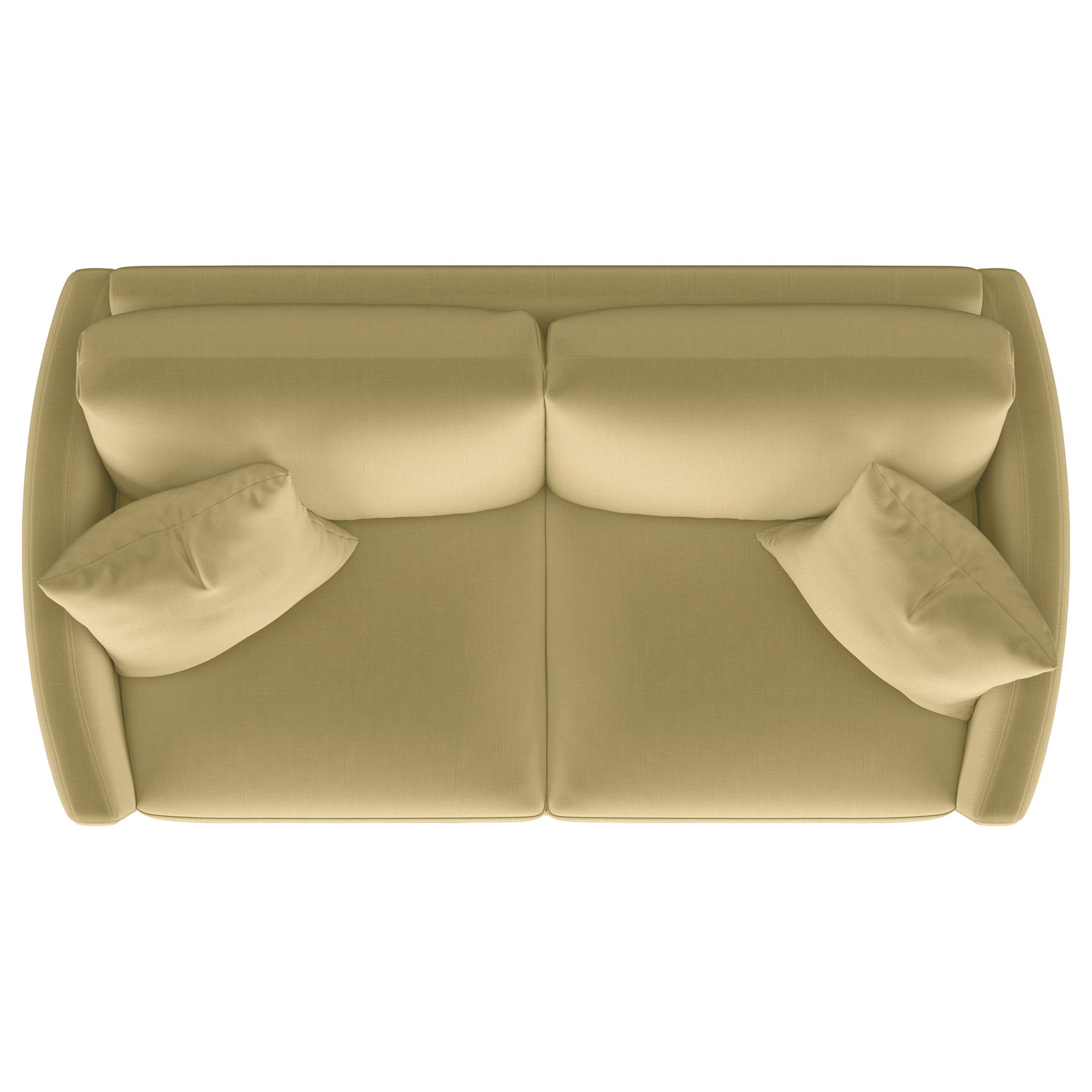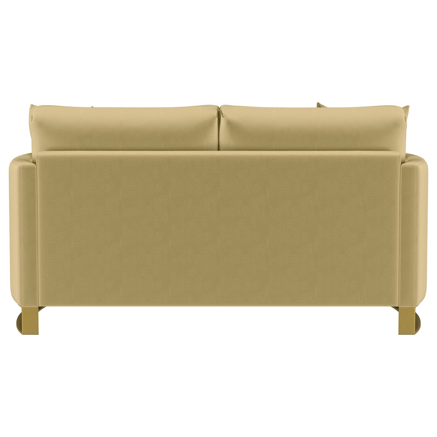 Indulge in opulent comfort with this textured velvet loveseat. Its reversible feather blend seat and back cushions, complemented by curved arms and gold stainless steel legs. Smooth upholstery and lustrous details blend simplicity with timeless splendor, making this piece a perfect focal point for refined interiors. With its inviting profile and graceful presence, it elevates both style and relaxation.