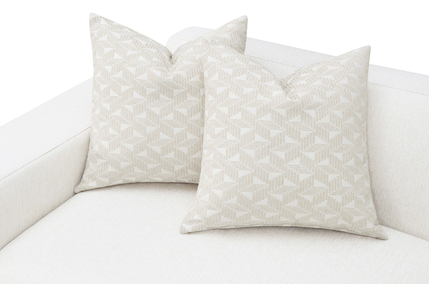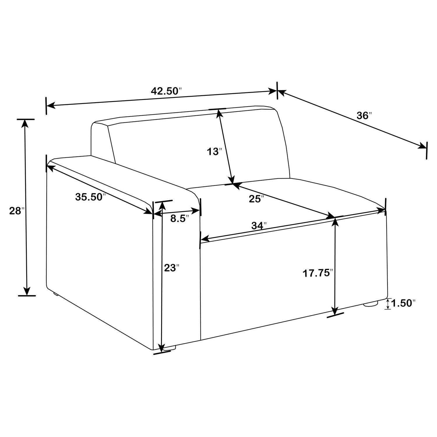 Transform your contemporary, modular sectional with this modern left arm facing chair, designed in an easy-to-clean pearl performance fabric across its foam padded pocket coil seat, low-profile backrest and straight track arm. Extend a sofa sectional or create a lounge chair back with this sophisticated and smart modular armchair.
