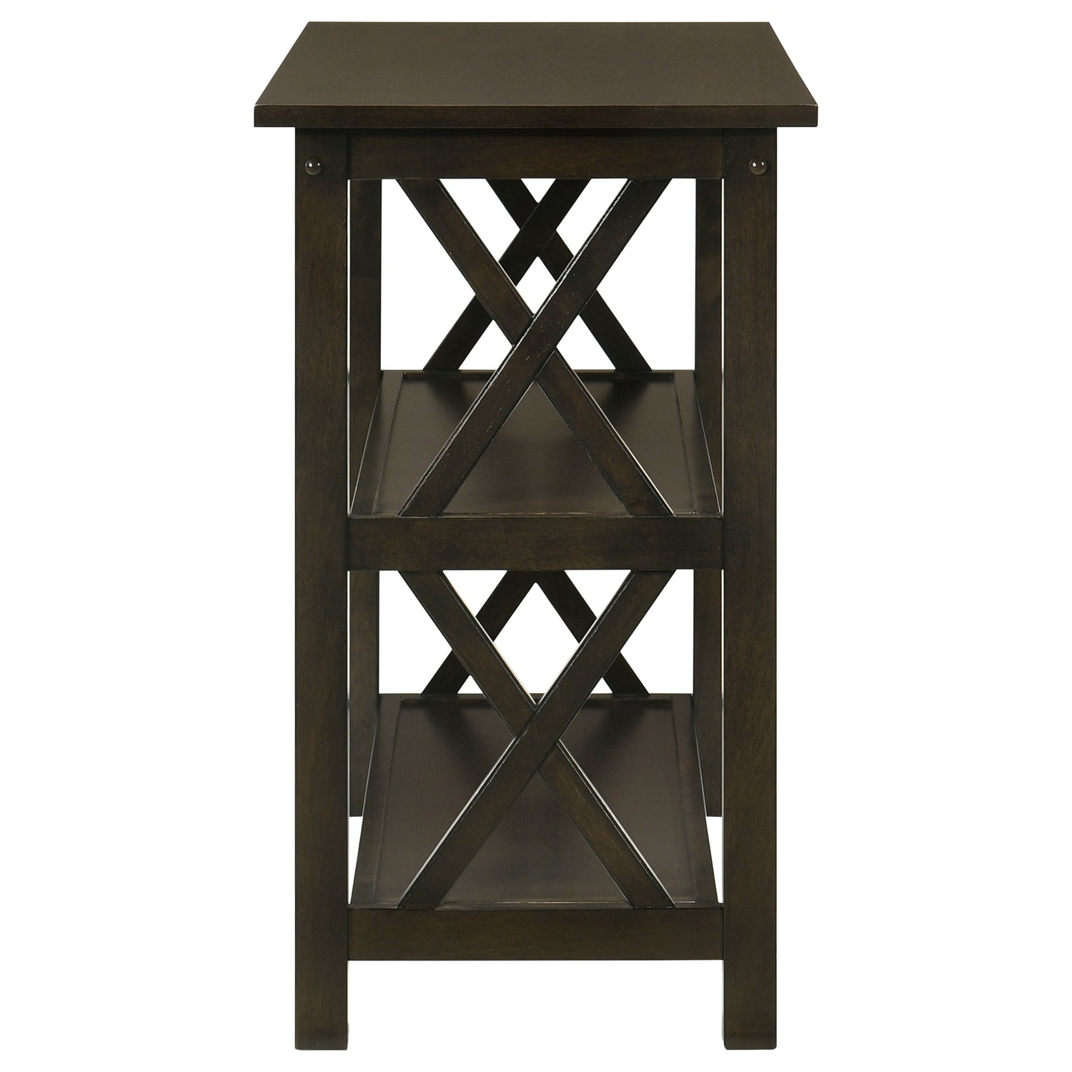 Bring an energizing look to a transitional space. With linear styling and geometric x-shapes on its side panels, this console table creates an eye-catching effect. Deep merlot offers a scrumptious, dramatic finish that blends well with surrounding furnishings. Find plenty of shelf space to match its rectangular surface. Place behind a sofa or against a wall for a central focus.