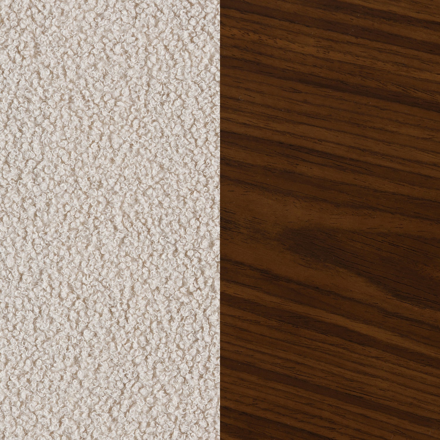 This modern rocking chair blends cozy comfort with sophisticated design, making it an ideal addition to any contemporary home. The plush boucle fabric upholstery wraps the seat and backrest, providing a soft and inviting surface. The walnut-finished bentwood frame adds warmth and elegance, while the curved wooden rockers and sturdy metal legs ensure smooth, stable motion. Whether used in a living room, nursery, or reading nook, this chair's sleek, modern silhouette complements a variety of interiors. Combining high-quality materials and a striking design, this rocker offers both style and comfort for your favorite spaces.