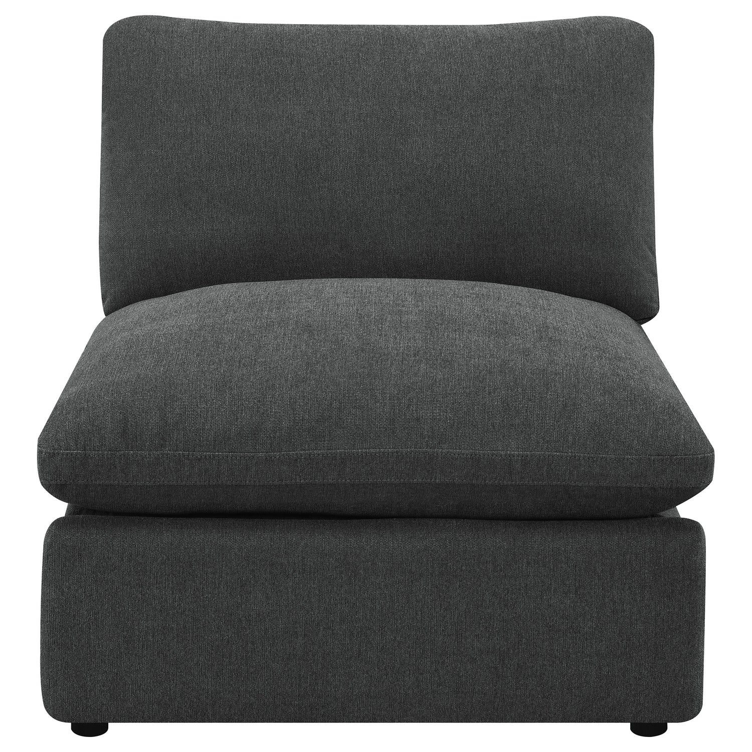 Add versatility to your modular sectional with the armless chair, designed to seamlessly blend with your existing furniture. This chair features a sleek, modern design and premium down-like filled cushions for exceptional comfort. Perfect for creating additional seating without taking up too much space.