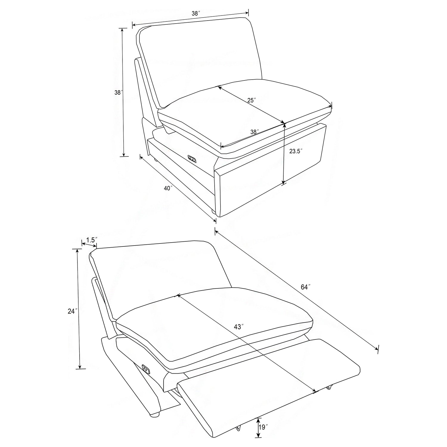 Power Armless Recliner | 38" | 40" | 38" |