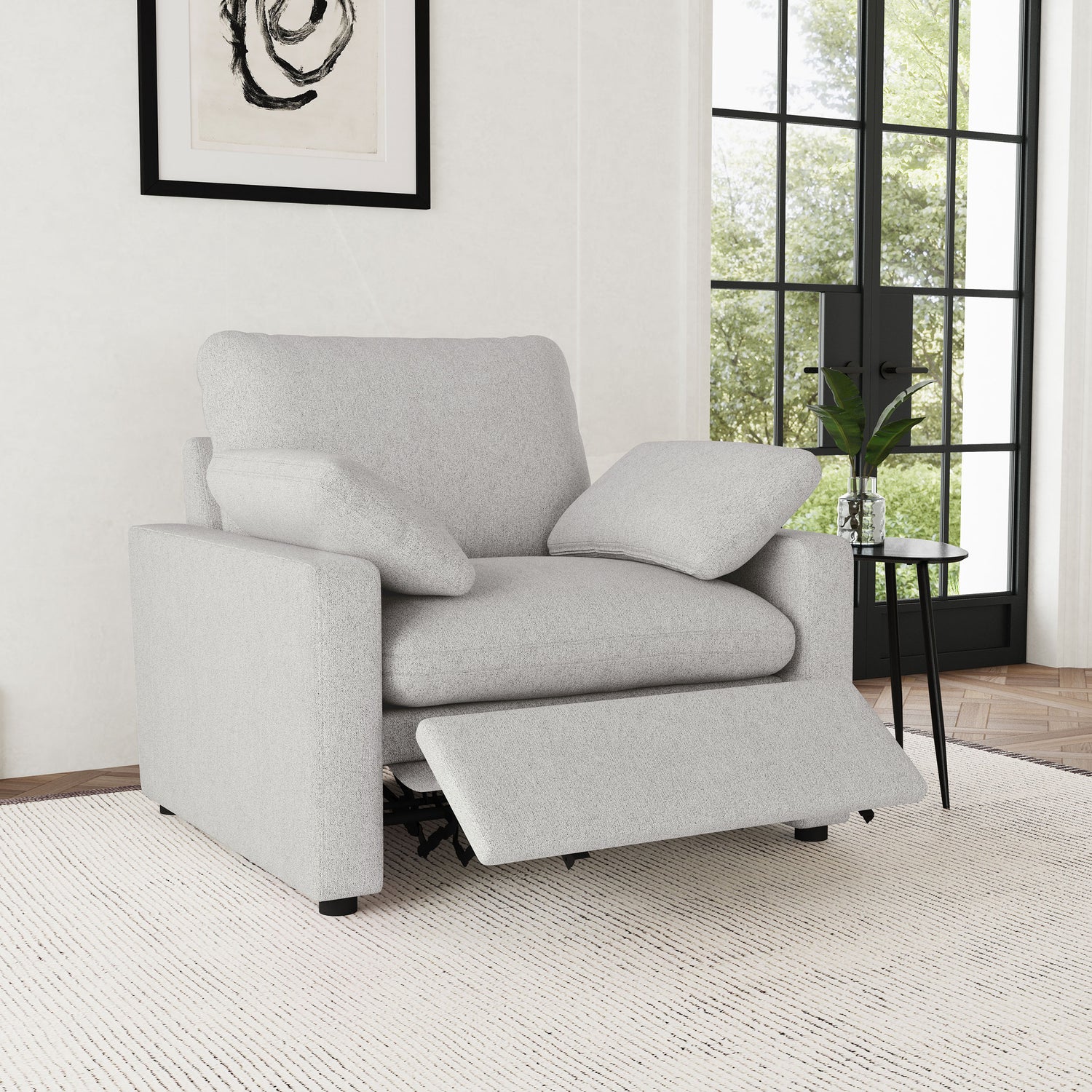 Experience ultimate relaxation with this recliner chair, designed for both comfort and functionality. Featuring a power reclining mechanism with a wall-hugging design, it provides a full recline without requiring excessive space. Plush cushions offer exceptional support, while the modular design allows seamless integration into your existing living room setup or as a standalone piece. Perfect for creating a cozy seating arrangement tailored to your needs.
