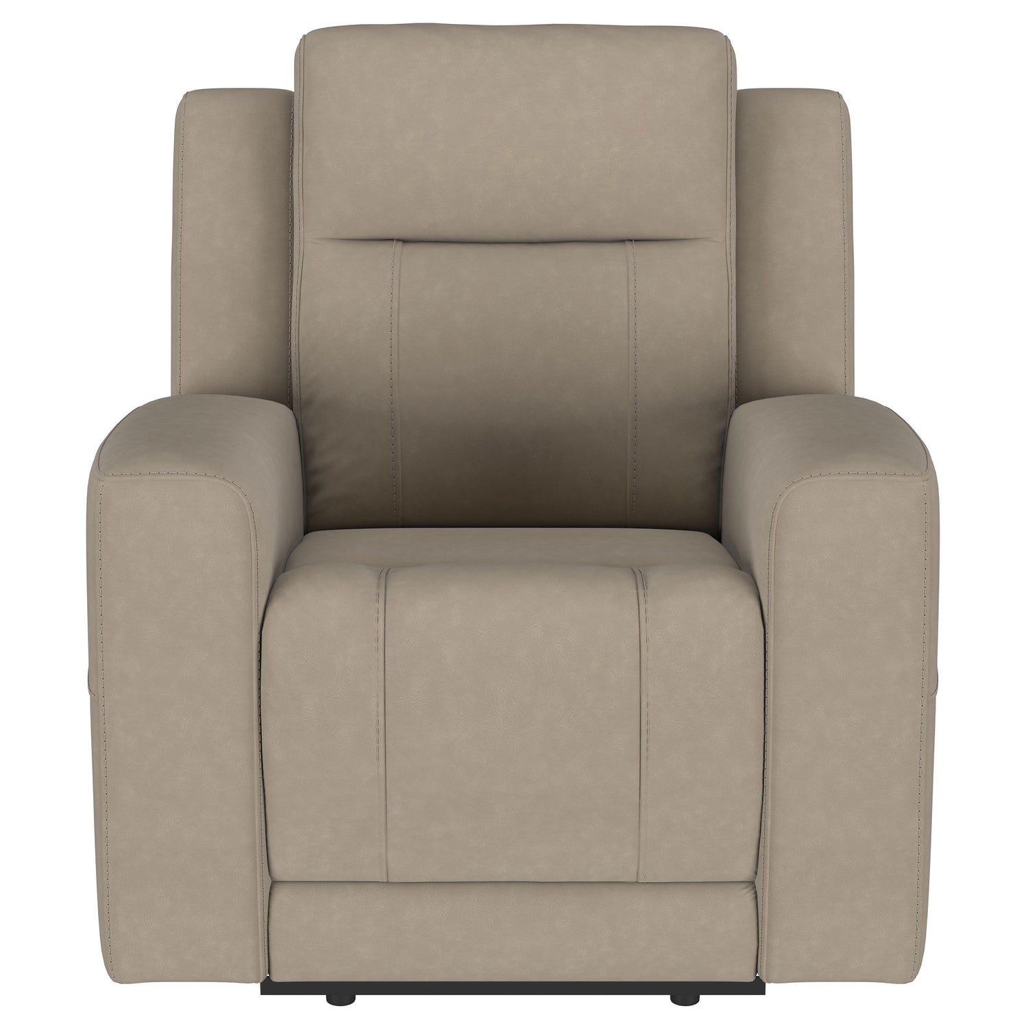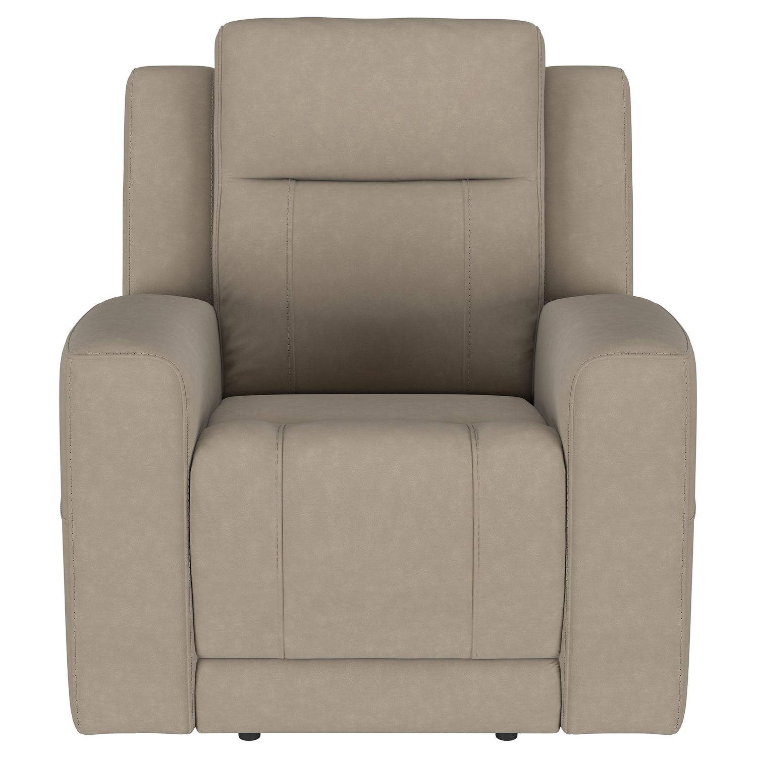 Reimagine your living room with the sleek, tailored appeal of a three-piece modern reclining sofa set. Delivering refined character, the set offers a reclining sofa, a loveseat with a center console, and a reclining armchair, perfect for a cohesive setup in your living area. Smooth faux leather upholstery is lightly tufted for comfort and support, while sinuous springs and webbed decking provide exceptional support. The loveseat is equipped with a convenience console that includes a padded top over a storage compartment for small essentials, and two cupholders ideal for game days and movie marathons. Kick up your feet and relax away all your worries.