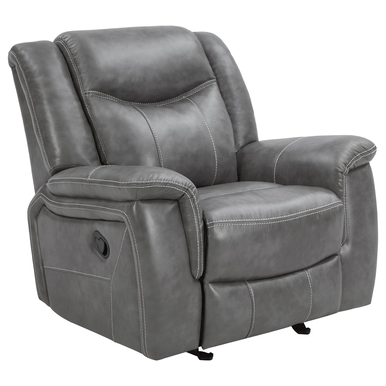 Great for an entertainment room, this three-piece living room set completes a modern motif. The cool grey finish gives the chic set a contemporary aura. Comfortable head and arm rests are rounded and refined, finished with neutral hues. The plush cushions of the motion sofa, loveseat, and recliner are welcoming and decorative adorned with brightly stitched decorations. The contrast from this set adds style to any space.
