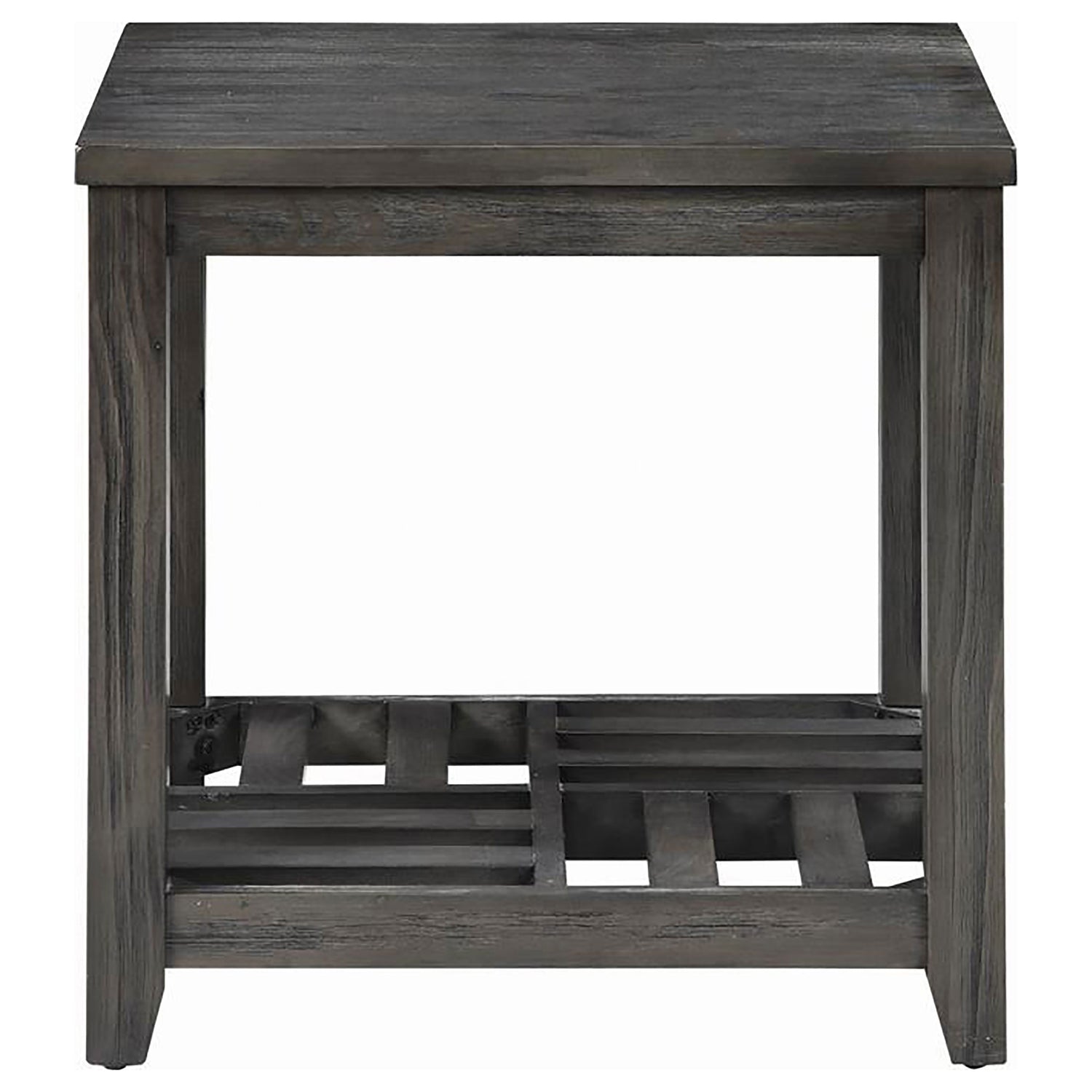 This coffee table set blends rustic charm with versatile functionality, making it a perfect addition to any living room. Constructed from engineered wood with pine veneer, each piece features a grey finish with wood grain accents for a timeless appeal. The coffee table offers a spacious rectangular top and a slatted lower shelf, while the end table includes a matching square top and shelf for cohesive design and utility. Clean lines and sturdy tapered legs complete the look, ensuring durability and style.