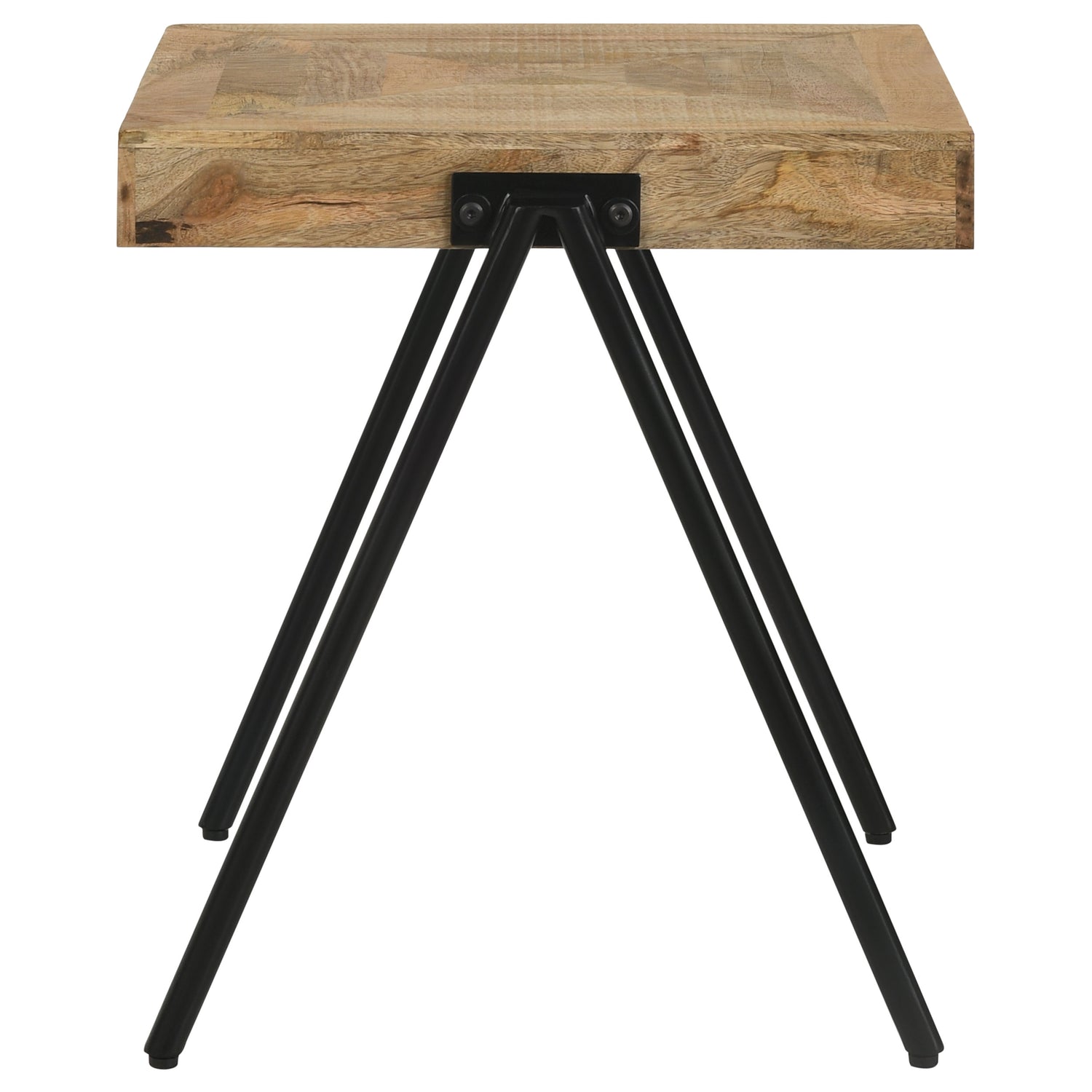 Elevate your living room with this coffee table set, featuring a rectangular coffee table and a square end table. Crafted from solid mango wood with a natural finish, these cocktail and side tables showcase rich grain patterns for a rustic appeal. Sturdy black powder-coated iron legs add a sleek industrial touch while ensuring durability. Perfect for displaying decor, organizing essentials, or serving snacks, this occasional table set balances timeless design with practical functionality.
