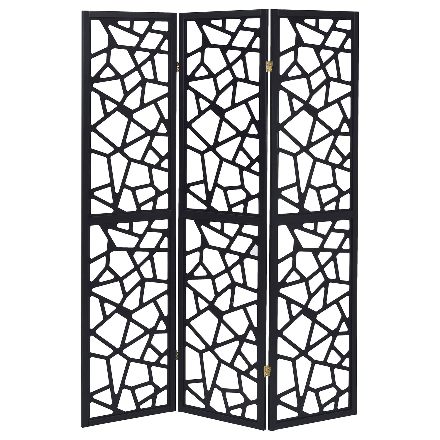 Nailan 3-Panel Room Divider Folding Screen Black Open Mosaic - Black is backordered and will ship as soon as it is back in stock.