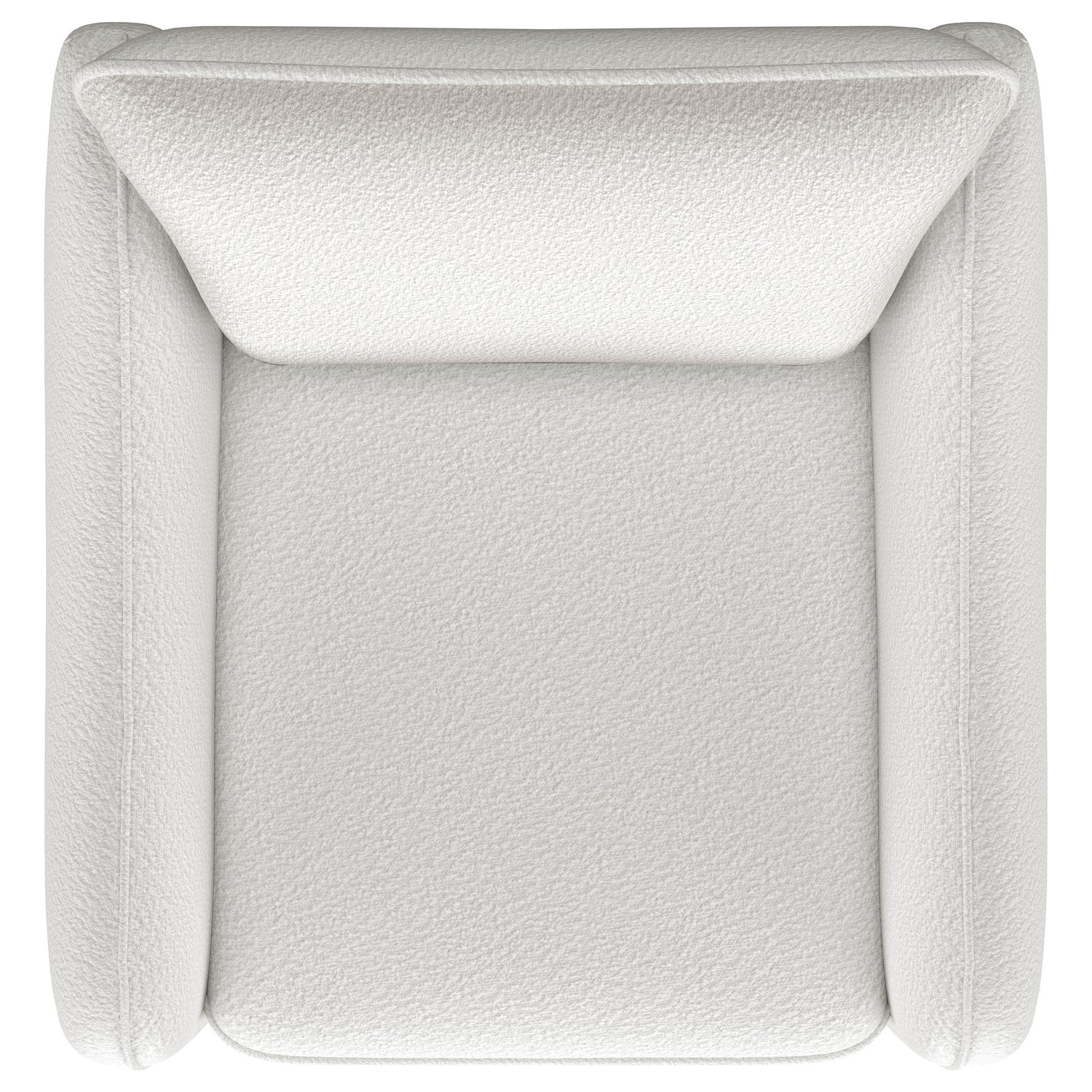 Nestled within the soft embrace of this bouclé upholstered chair, one finds a moment of tranquility. Its harmonious 360 swivel and glider functionality make each movement a fluid dance, a gentle invitation to unwind. The meticulously shaped arms, a testament to refined style, offer a restful perch for weary elbows. As the day's light fades, this chair becomes a cherished haven, its silhouette a blend of comfort and contemporary charm. In this cozy nook, time slows, and serenity takes a seat.