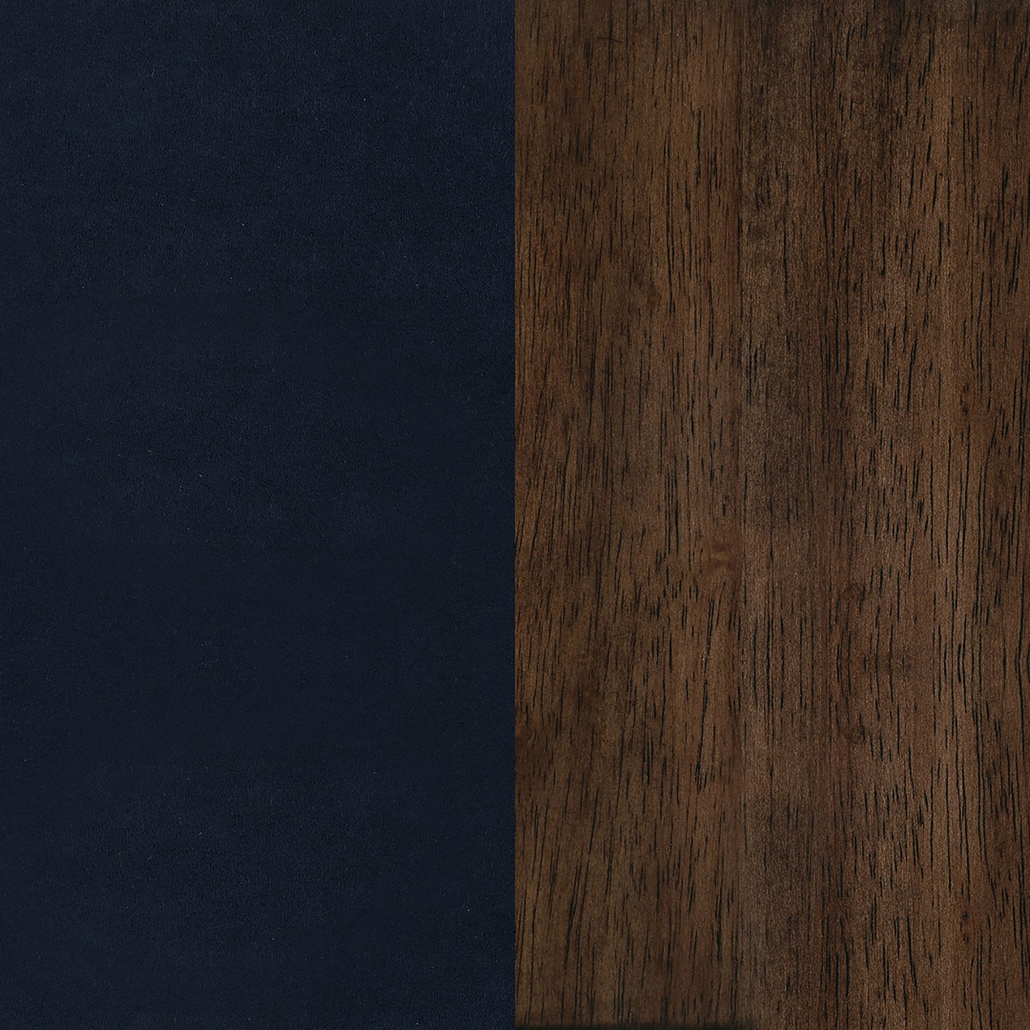 Go bold in both tones and silhouette when you add this fabric accent chair to your home. Chair is upholstered in soft dark blue fabric. Padded seat and back cushions provide hours of comfort. Rich brown armrests and legs offer warmth and support. It's a bold, handsome addition to your living room or den.