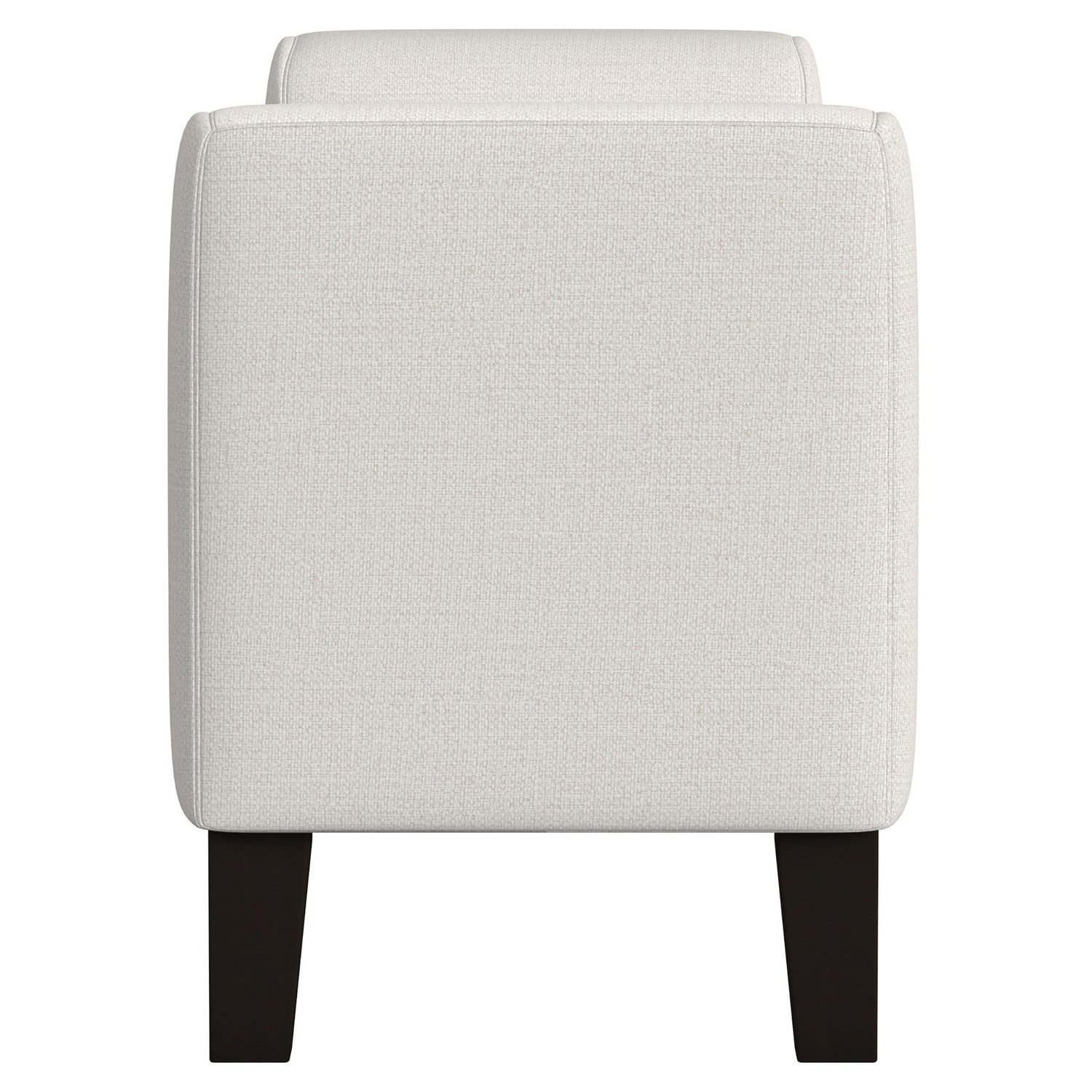 Finishing touches like a modern upholstered bench take your decor from good to great. This bench boasts a backless profile with arms the create a chic, cozy silhouette. The bench seat and frame are upholstered in soft vanilla fabric, creating a neutral palette that brims with elegance. The bench is a charming choice for the foot of your bed or an inviting living area or den, adding seating with a compact footprint. Tall wooden legs receive a black finish to bring the perfect hint of contrast to this striking modern bench.