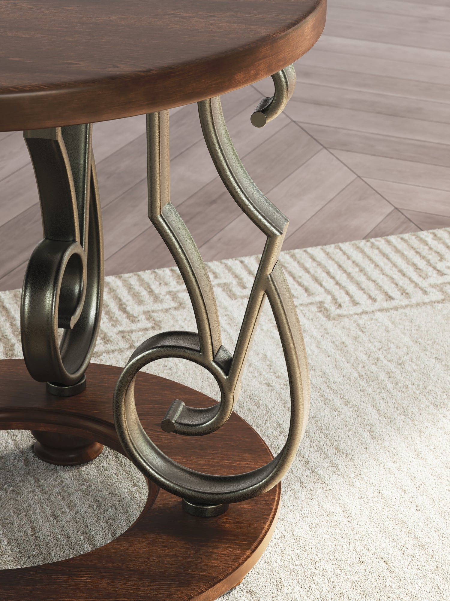This end table is nothing short of stunning. A rich, warm brown finish exudes opulent elegance, while ornate metal legs add a touch of timeless sophistication. It's perfect for displaying your delicious decor in grand style.