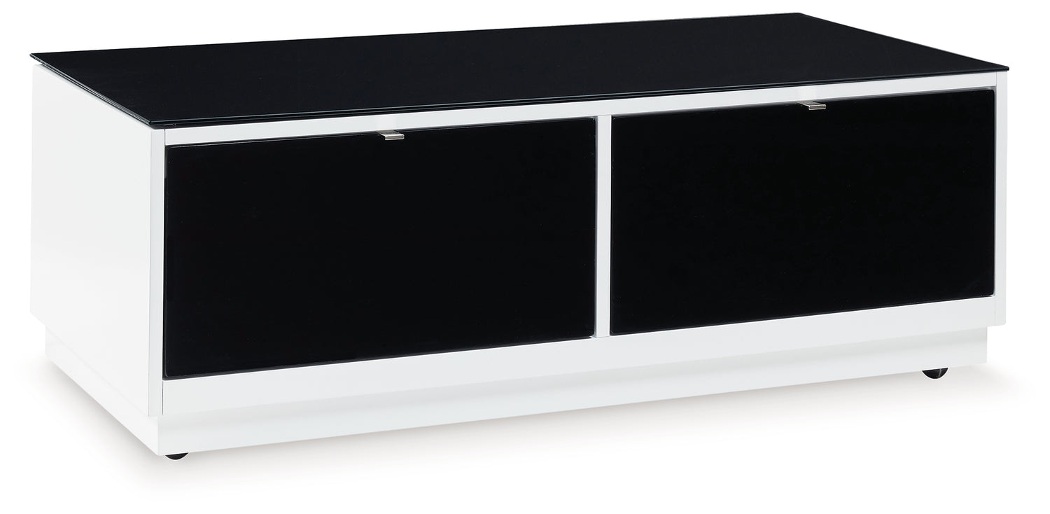 Combining a high-gloss white finish with a black glass tabletop, this occasional table package proves opposites really do attract. It's the perfect blend of modern style and functionality. With plenty of storage space, this set is a smart choice on so many levels.